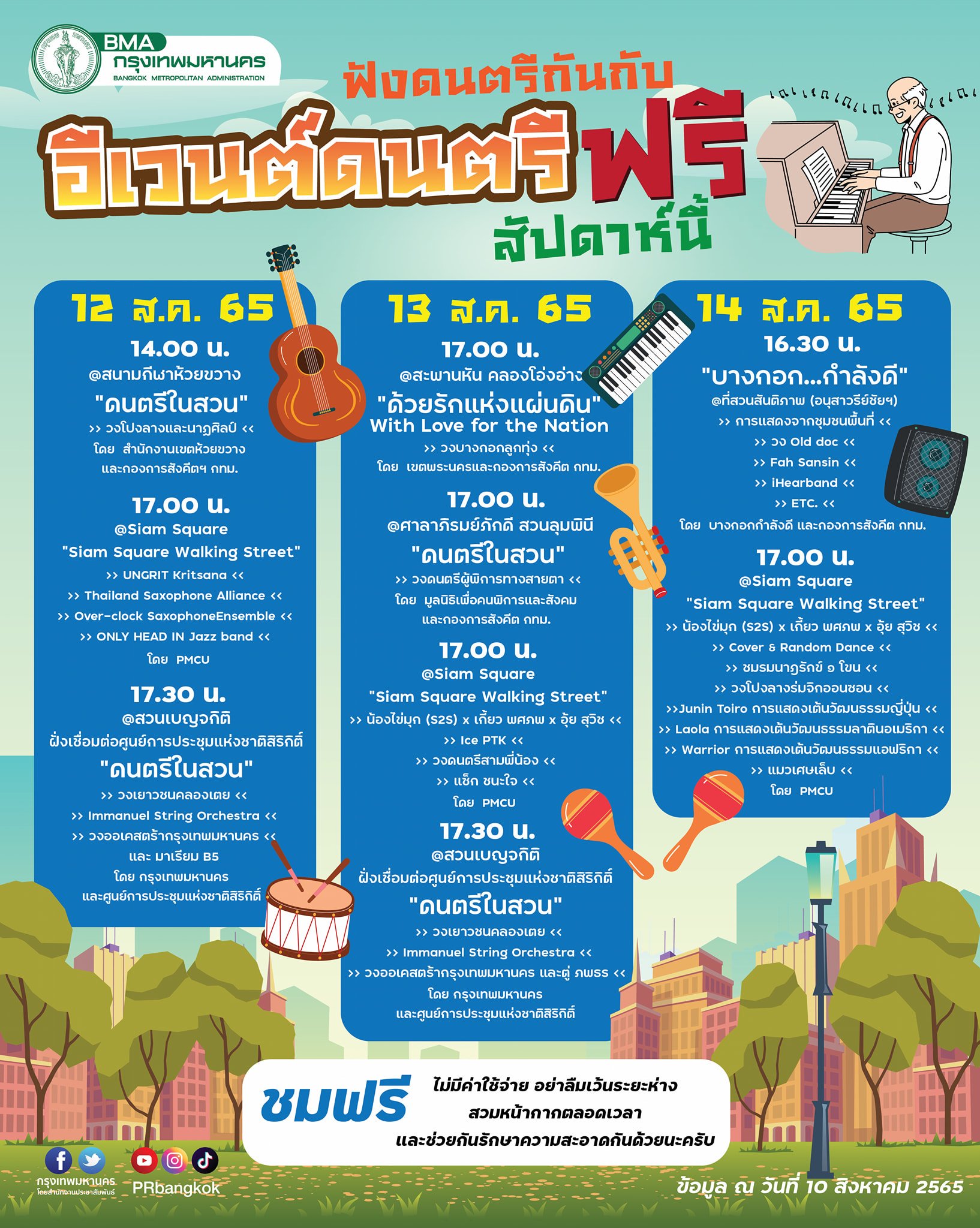 เปิดตารางกิจกรรมงาน ดนตรีในสวน สัปดาห์วันแม่แห่งชาติ 12 สิงหาคม 2565 ใครใกล้ที่ไหน พาคุณแม่ ไปร่วมกิจกรรมฟังเพลงได้ ฟรีไม่มีค่าใช้จ่าย