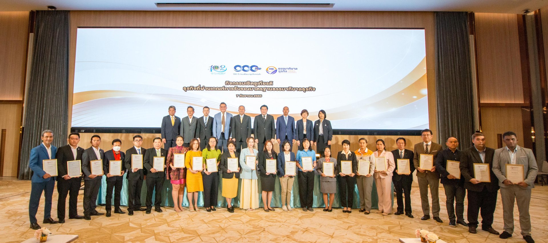 กระทรวงพาณิชย์มอบกรมพัฒนาธุรกิจการค้าจัดพิธีเชิดชูเกียรติธุรกิจที่ผ่านการรับรองตามเกณฑ์มาตรฐานธรรมาภิบาลธุรกิจรวบ 2 ปี (2564-2565) และเชิญเข้าร่วมรับหนังสือรับรองเชิดชูเกียรติฯ จำนวน 40 ราย โดยในปี 2565 มีธุรกิจที่ผ่านเกณฑ์มาตรฐานธรรมาภิบาลธุรกิจ จำนวน 93 ราย แบ่งเป็นรายใหม่ 16 ราย และต่ออายุหนังสือรับรอง 77 ราย ซึ่งเป็นธุรกิจที่ผ่านการพิจารณาอย่างเข้มข้นจากคณะกรรมการที่มาจากภาครัฐ เอกชน ผู้ทรงคุณวุฒิ พร้อมพิจารณาเอกสารของธุรกิจ