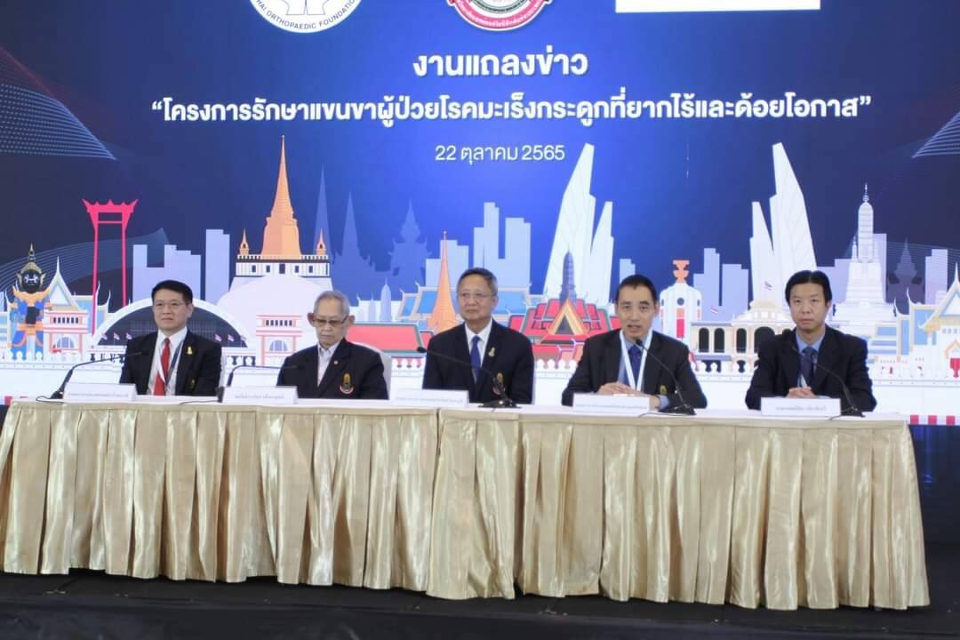 ราชวิทยาลัยแพทย์ออร์โธปิดิกส์แห่งประเทศไทย ร่วมกับ มูลนิธิแพทย์ออร์โธปิดิกส์ จัดงานแถลงข่าวเปิดตัว “โครงการรักษาแขนขา ผู้ป่วยโรคมะเร็งกระดูกที่ยากไร้และด้อยโอกาส” โดยมี ศาสตราจารย์นายแพทย์ ธไนนิธย์ โชตนภูติ ประธานราชวิทยาลัยแพทย์ออร์โธปิดิกส์แห่งประเทศไทย, ศาสตราจารย์นายแพทย์อารี ตนาวลี ประธานมูลนิธิแพทย์ออร์โธปิดิกส์, ศาสตราจารย์นายแพทย์ ทิพชาติ บุณยรัตพันธ์ นายกสมาคมออร์โธปิดิกส์แห่งประเทศไทย และ ประธานรับเลือกราชวิทยาลัยแพทย์ออร์โธปิดิกส์ แห่งประเทศไทย ร่วมเป็นประธานจัดงานฯ พร้อมด้วย พลโธธำรงรัตน์ แก้วกาญจน์ อดีตประธานราชวิทยาลัยแพทย์ออร์โธปิดิกส์แห่งประเทศไทย และ นายแพทย์ปิยะ เกียรติเสวี ผู้คิดค้นนวัตกรรม นอกจากนี้ ได้จัดให้มีพิธีมอบเงินสนับสนุนโครงการฯ จากท่านรองประธานหอการค้าไทยฯ และตัวแทนจากบริษัทจอห์นสันฯ พร้อมทั้งเยี่ยมชมบรรยากาศการจัดงานประชุมวิชาการ “The 44th Annual Meeting of The Royal College of Orthopaedic Surgeons Of Thailand KOA Visiting RCOST Say Yes to the New Adventure” ณ ศูนย์ประชุมนานาชาติพีช พัทยา