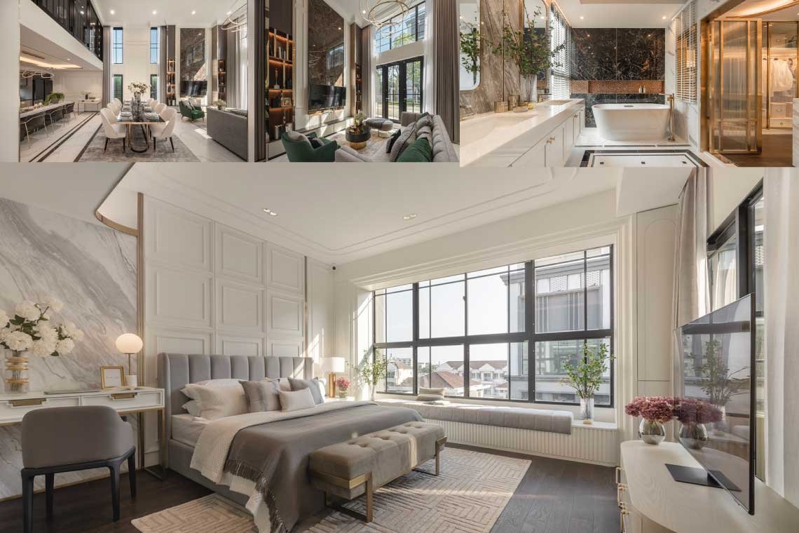 Modern Classic Cluster House ทาวน์โฮมและบ้านแฝด 4.5 ชั้น พร้อมลิฟต์ในบ้านทุกหลังเพื่อตอบโจทย์การใช้ชีวิตที่ลงตัว และรองรับครอบครัวหลากหลาย Generation ให้ทุกชั้นเข้าถึงกันได้อย่างสะดวกมากยิ่งขึ้น บนพื้นที่ดินเริ่มต้น 22-46.5 ตารางวา พื้นที่ใช้สอยรอบบ้านเริ่มต้นที่ 346 - 600 ตารางเมตร รูปแบบ 3 ห้องนอน 4 ห้องน้ำ มาพร้อมฟังก์ชันการใช้งานให้ทุกพื้นที่มีนวัตกรรมต่าง ๆ ที่จะสร้างสมดุลในการใช้ชีวิต ของทุกคนในครอบครัว พื้นที่ห้องนั่งเล่นตรงกลางบ้านได้ถูกออกแบบให้มีเพดานสูงแบบ Double Volume กว่า 5 เมตร ให้ความรู้สึกปลอดโปร่ง ผ่อนคลาย และห้องทำงานบริเวณชั้นลอย รองรับการปรับแต่งสร้างพื้นที่ส่วนตัวและบรรยากาศการใช้สอยพื้นที่ร่วมกันอย่างลงตัว Living Area ที่เชื่อมต่อกับสวนส่วนกลางเพิ่มความร่มรื่นให้แก่ภายในบ้าน วัสดุเกรดคุณภาพพิเศษ อาทิ Double Wall, Engineering Wood อีกทั้งยังมี Private Relaxation ด้วยสระว่ายน้ำระบบเกลือ สวนส่วนตัวภายในบ้าน ให้ผู้พักอาศัยได้ใช้ชีวิตอย่างผ่อนคลายในทุก ๆ วัน