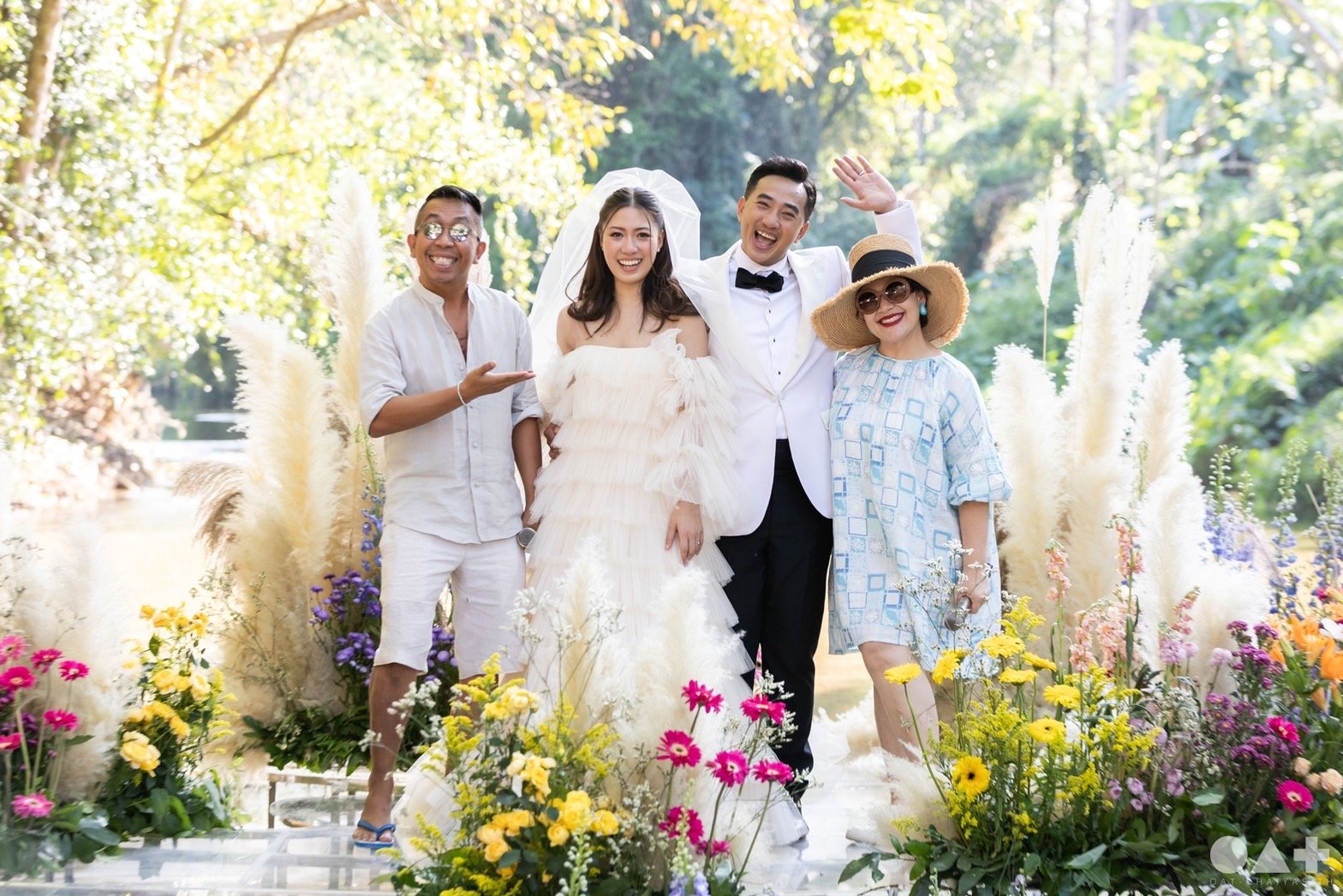 ได้มีพิธีแลกแหวนแทนใจ และฉลองมงคลสมรส มีครอบครัวคนสนิทของทั้งสองฝ่าย รวมถึงคนในวงการบันเทิง "ตูน อาทิวราห์" (ตูน บอดี้สแลม) ควงคู่ "ก้อย รัชวิน" และ "น้องทะเล" , อ้น สราวุธ, เก๋ ชลลดา , "เป๊ก เปรมณัช" ควงคู่ภรรยาสาว "นิว นภัสสร" ,ผู้กำกับเสือ ยรรยงฯลฯ มาร่วมงาน โดย แหม่ม สุริวิภา และ ลิง สมเกียรติ (เสนาลิง)รุ่นพี่คนสนิทในวงการ เป็นพิธีกร