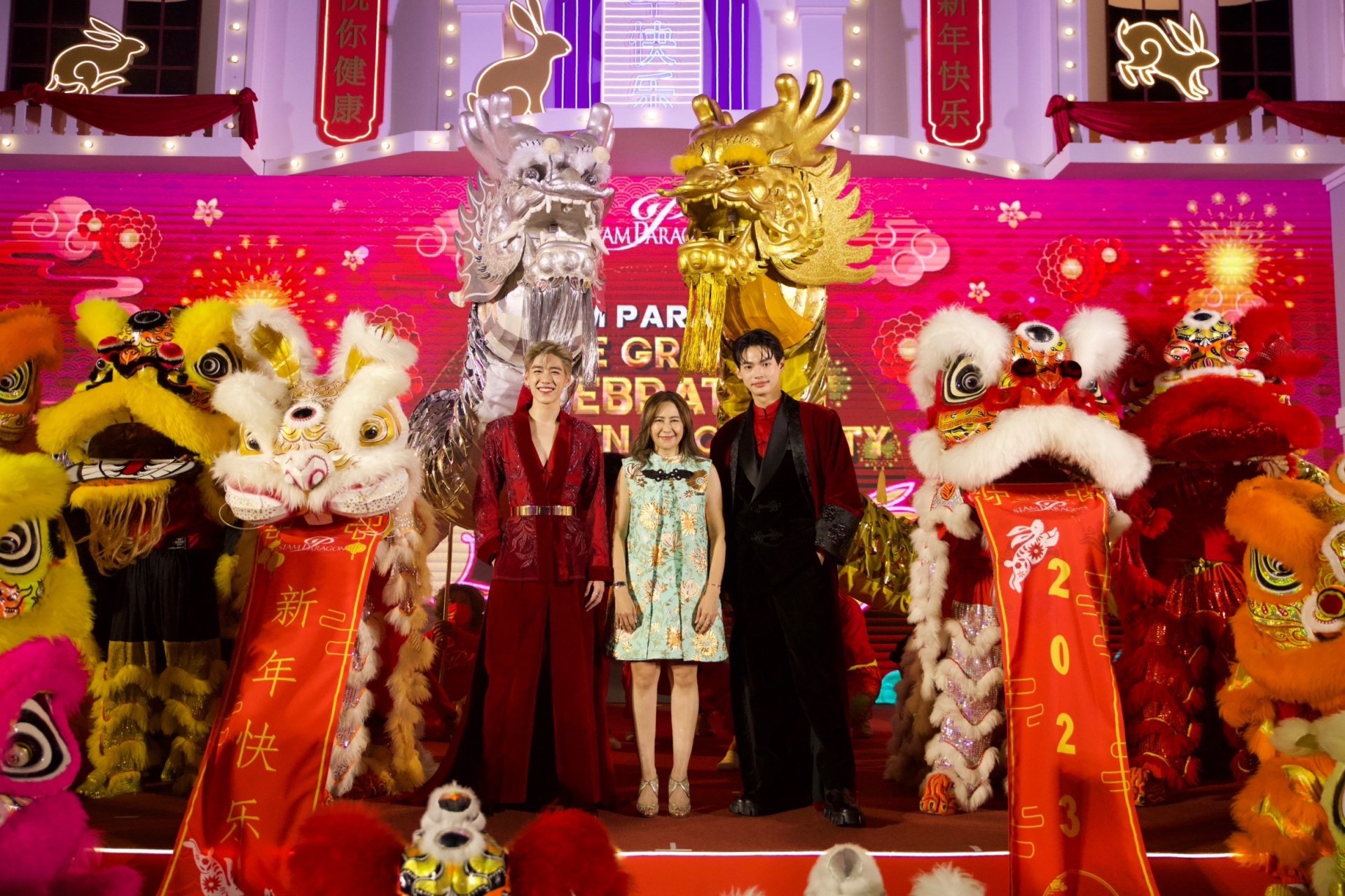 โดยสยามพารากอนร่วมฉลองตรุษจีนปีกระต่ายทองยิ่งใหญ่กับขบวนดาราศิลปินดังทั้งไทยและเทศ ให้เหล่าแฟนคลับได้เข้าชมฟรีทุกวัน ซึ่งงาน “Siam Paragon The Grand Celebration of Golden Prosperity 2023” เปิดงานอย่างยิ่งใหญ่อลังการไปเมื่อ 20 ม.ค. ที่ผ่านมา โดยมีอั้ม - พัชราภา ไชยเชื้อ ควงคู่ อาโป - ณัฐวิญญ์ วัฒน กิติพัฒน์ ปรากฏตัวพร้อมด้วย ชุดเครื่องเพชรประดับทับทิมและผ้าพันคอทองคำประดับเพชรจากบลูริเวอร์ มูลค่าร่วม 100 ล้านบาท และยังมีดาราศิลปินดังมาร่วมฉลองตรุษจีนปีเถาะมากมาย รวมถึงสองหนุ่มคู่จิ้น บอม ธนวัฒน์ และ ต้าอธิวัตน์,