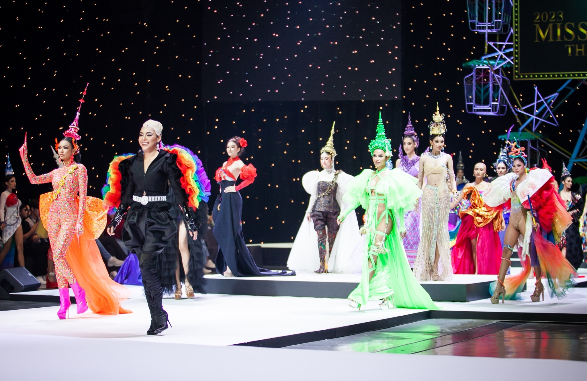สำหรับบรรยากาศ Welcome Ceremony & Press Conference : Miss Grand Thailand 2023 ค่ำคืนนี้ที่ MGI Hall ชั้น 6 ศูนย์การค้า SHOW DC ถ.พระราม 9 เต็มไปด้วยแขกผู้มีเกียรติ สื่อมวลชน เพจนางงาม และ Influencer รวมถึงแฟนนางงามที่รับชมจากทุกมุมโลกผ่านทาง YouTube : Grand TV แชมป์ สกุล ลิมปภานนท์ รับหน้าที่พิธีกร เปิดเวทีด้วยแฟชั่นโชว์ชุด Thai Heritage Of Pride (ไทย เฮอริเทจ ออฟ ไพรด์) ฝีมือออกแบบตัดเย็บโดย 77 ดีไซน์เนอร์ จากแรงบันดาลใจสีรุ้ง “ความหลากหลายแห่งเพศ” แต่ละชุดแบบไม่ซ้ำ ความหมายดี และ “มีเพียงชุดเดียวในโลก” โดยชุดทั้ง 77 จังหวัด จะได้ร่วมขบวนพาเหรดในงาน Bangkok Naruemit Pride 2023 ซึ่งปีนี้ คุณวาดดาว แต่งเกลี้ยง Founder and Managing Director ผู้ก่อตั้งเตรียมจัดงานอย่างยิ่งใหญ่ใจกลางกรุงเทพมหานครในวันที่ 4 มิถุนายน 2566 เซอร์ไพรซ์สุดเมื่อ อิงฟ้า วราหะ ฟินนาเล่ ออกมาในชุด จันทรคราสลอเรียล พรีเซ็นเตอร์สกินไทยคนล่าสุด พร้อมประกาศข่าวดี ROV คือผู้สนับสนุนหลักเวที มิสแกรนด์ ไทยแลนด์ อย่างเป็นทางการ