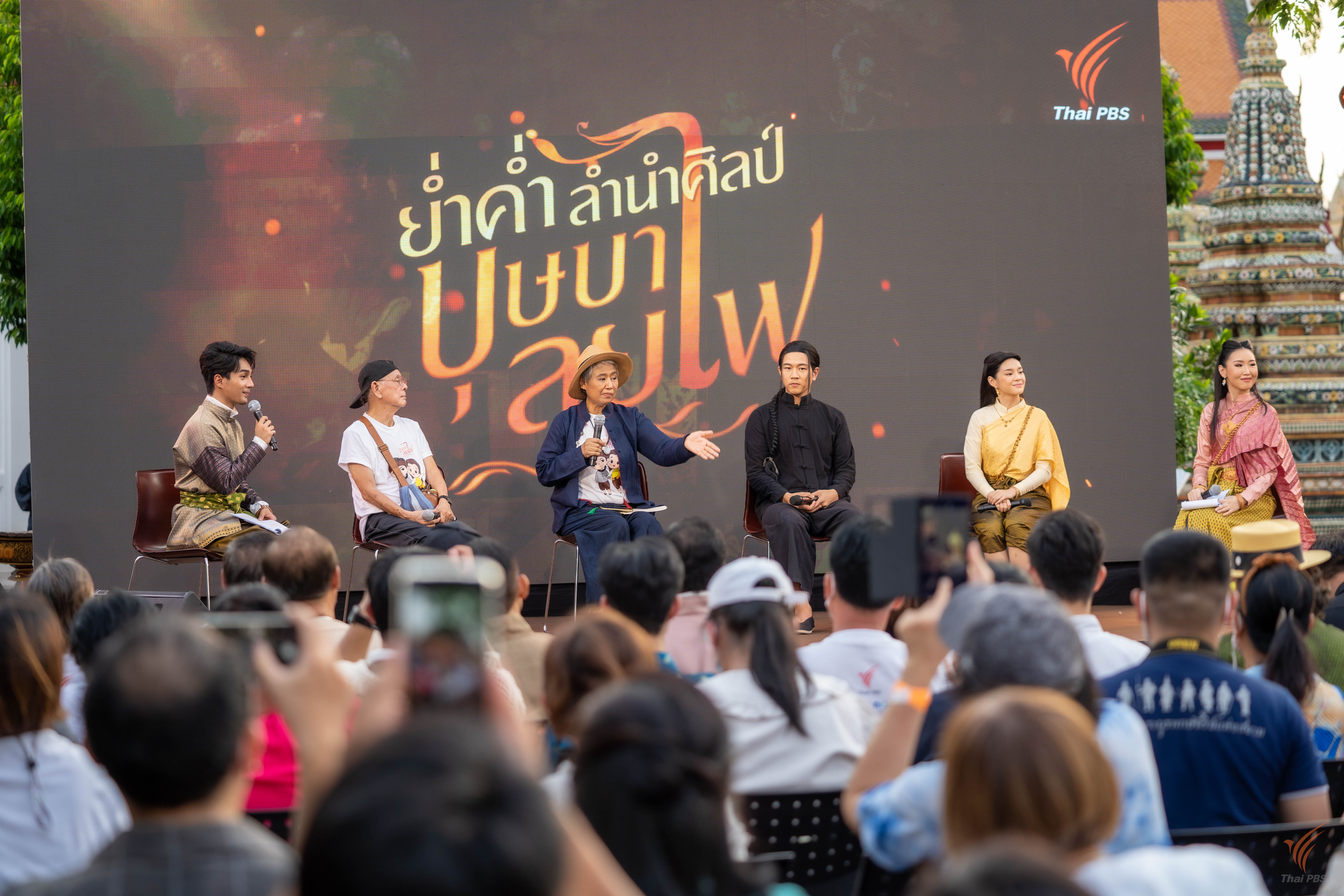 องค์การกระจายเสียงและแพร่ภาพสาธารณะแห่งประเทศไทย (ส.ส.ท.) หรือ ไทยพีบีเอส นำโดย รศ. ดร.วิลาสินี พิพิธกุล ผู้อำนวยการ ส.ส.ท. ร่วมกับ รติวัลคุ์ ธนาธรรมโรจน์ ประธานเจ้าหน้าที่บริหาร และ ฐิติ สุทธิกุลพานิช กรรมการบริหาร บริษัท จูเวไนล์ จำกัด พร้อมยกทีมผู้กำกับ ผู้ประพันธ์ และนักแสดงจากละครเรื่อง “บุษบาลุยไฟ” นำโดย พ่ออี๊ด-สุประวัติ ปัทมสูต ศิลปินแห่งชาติ สาขาศิลปะการแสดง ผู้กำกับ ปราณประมูล ผู้ประพันธ์บทละคร พร้อมด้วยคู่พระนาง โทนี่ รากแก่น และ เฌอปราง อารีย์กุล (เฌอปราง BNK48) และทัพนักแสดงอีกคับคั่ง ได้แก่ ลูกหว้า-พิจิกา จิตตะปุตตะ, เอ็กซ์-พรเลิศ พิพัฒน์รุ่งเรือง, บัว-ภัทรสุดา อนุมานราชธน, อ้น-เลอวิทย์ สังข์สิทธิ์, มากิ-มาชิดา สุทธิกุลพานิช, แพรว-หัสสยา อิสริยะเสรีกุล, ภัทร-นัตธนนท์ ปิ่นโรจน์กีรติ, น็อต-ธีร์ อริยฤทธิ์วิกุล, ทอม จักรกฤต โยมพยอม, ริด้า-ฟาริดา วัลเล่อร์, ญาณี-ตราโมท, รัก-ศรัทธา ศรัทธาทิพย์, หยา-จรรยา ธนาสว่างกุล, จ๋า-โมฬีวรรณ พันธรักษ์, พรเพ็ญ ฟ้าอำนวย และ กัญจนปกรณ์ แสดงหาญ ได้ฤกษ์จัดงาน “ย่ำค่ำ ลำนำศิลป์ บุษบาลุยไฟ” ณ วัดพระเชตุพนวิมลมังคลาราม (วัดโพธิ์)