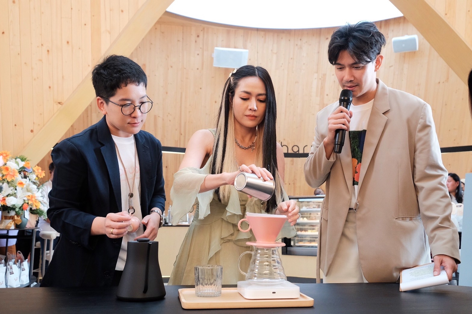 ภายในงานอบอวลไปด้วยกลิ่นไอความหอมกรุ่น ละมุนของกาแฟ โดยได้รับเกียรติจาก “ครูกุ้ง - วรงค์ ชลานุชพงศ์” ผู้บริหารและเจ้าของแบรนด์ NANA COFFEE ROASTERS มาร่วมพูดคุยถึงแนวคิดของการขยายธุรกิจเปิดตัวสาขาใหม่ที่จังหวัดชลบุรี นอกจากนี้ยังมีนักร้องสาวDIVA “นิว นภัสสร ภูธรใจ” ได้มาลองรังสรรค์เมนูกาแฟซิกเนเจอร์ของ HARUDOT BY NANA COFFEE ROASTERS สาขาชลบุรีร่วมกับทีมบาริสต้า พร้อมแชร์ประสบการณ์เมนูกาแฟหลากหลายรสชาติ และเรื่องราวน่ารักๆ ในช่วง ARTS&MUSIC THERAPHY หัวข้อ “จุดเริ่มต้นจากเมล็ด..เล็ก..เล็ก” โดยมีนิวDIVAสาวโชว์บทเพลงไพเราะสร้างแรงบันดาลใจ ส่งต่อความสุข ในบรรยากาศสุดสร้างแรงบันดาลใจ!! และสาวนิวยังเตรียมผลงาน “รูปต้นไม้กาแฟ” จากฝีมืองานอาร์ตสะบัดปลายพู่กันของเธอเอง มอบเป็นของขวัญให้ครูกุ้งในโอกาสพิเศษนี้ด้วย โดยมี “เป๊ก เปรมณัช สุวรรณานนท์” ผู้ที่มีความชื่นชอบในงานสถาปนิกและการออกแบบรับหน้าพิธีกร