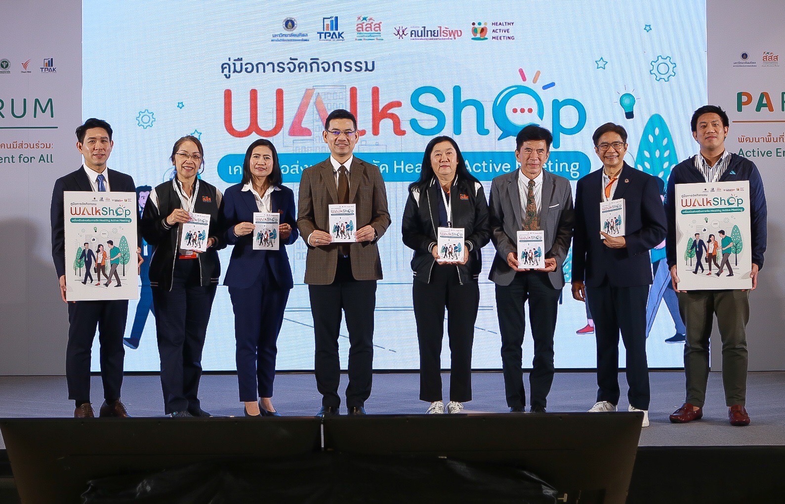 ศูนย์พัฒนาองค์ความรู้ด้านกิจกรรมทางกายประเทศไทย (ทีแพค) สถาบันวิจัยประชากรและสังคม มหาวิทยาลัยมหิดล ร่วมกับ สำนักงานกองทุนสนับสนุนการสร้างเสริมสุขภาพ (สสส.) และภาคีเครือข่ายด้านการส่งเสริมกิจกรรมทางกายของประเทศไทย เปิดตัวคู่มือการจัดกิจกรรม “Walkshop เดินไปคุยไป” ภายในงาน PA FORUM งานเสวนาวิชาการและนโยบายด้านกิจกรรมทางกาย (EP1) – การพัฒนาพื้นที่สุขภาวะที่ทุกคนมีส่วนร่วม Active Environment for All