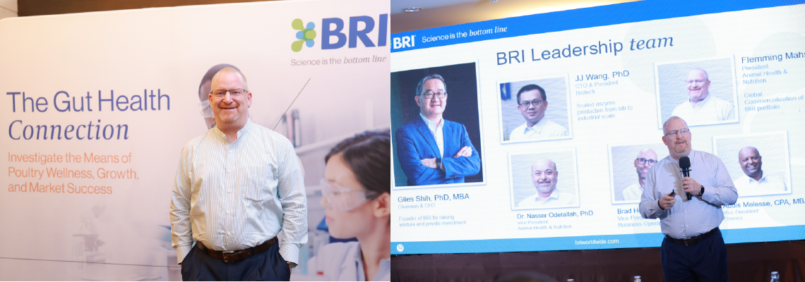 จากการมองเห็นโอกาสของการเลี้ยงสัตว์เพื่อบริโภคที่มีการเติบโตอย่างต่อเนื่อง ปีนี้ BRI ได้นำผลิตภัณฑ์เข้ามาจำหน่ายในไทย 3 แบรนด์ โดยแบรนด์เรือธงสำคัญ คือ เอ็นซาโปร (Enzapro) ซึ่งเป็นผลิตภัณฑ์ที่ออกฤทธิืเสริมกัน หรือ Zymbiotic ซึ่งประกอบด้วย Enzyme Prebiotic และ Probiotic ซึ่งเอ็นซาโปร จะเข้ามาช่วยเพิ่มประสิทธิภาพการทำงานของระบบลำไส้สัตว์ เพิ่มประสิทธิภาพการย่อย เพิ่มความสมดุลของลำไส้ ลดการก่อโรคของแบคทีเรียที่จะทำให้เกิดความเสียหายในลำไส้ ซึ่งเอ็นซาโปร สามารถส่งเสริมสมรรถภาพทางเดินอาหารของไก่ ปลา หมู เอ็นซาโปรเป็นสารธรรมชาติที่ได้จากการหมักจุลินทรีย์สายพันธุ์พิเศษ ที่สามารถเพิ่มการเจริญเติบโตได้ดี โดยที่ไม่ต้องใช้สารเร่งโตเป็นตัวช่วย ที่สำคัญ เอ็นซาโปรไม่ใช่ยาปฎิชีวนะ จึงไม่นำไปสู่ปัญหาของการดื้อยาทั้งในคนและในสัตว์ ซึ่งเป็นปัญหาใหญ่ในเวลานี้”