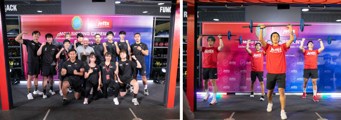 Jetts Fitness : โดย. ไมค์ แลมป์ ผู้บริหารสูงสุดของ ฟิตเนส แอนด์ ไลฟ์ สไตล์กรุ๊ป ประเทศไทย (FLG) เปิดเผยว่า. Jetts Fitness มีความยินดีเป็นอย่างยิ่ง ที่ได้มีโอกาสร่วมกิจกรรมกับสถาบันการศึกษาระดับประเทศ อย่าง มหาวิทยาลัยสวนดุสิต ที่ต้องการสนับสนุนให้นักศึกษาในชั้นปีที่ 1 ได้ใช้เวลาในการออกกำลังกาย เพราะการออกกำลังกาย ไม่ว่าจะมากหรือน้อย นั่นคือการปูพื้นฐานที่จะทำให้ทุกคนมีสุขภาพกายที่ดี และเมื่อเรามีสุขภาพกายที่ดี สุขภาพจิตเราก็จะดีไปด้วย ซึ่งน้องๆ นักศึกษาที่ต้องใช้เวลาในการเรียนอาจจะมีเครียดบ้าง เพราะฉะนั้นการออกกำลังกายก็จะเป็นอีกวิธีหนึ่งที่จะสามารถทำให้น้องๆ ได้ผ่อนคลายและเพิ่มประสิทธิภาพในการเรียนได้ดียิ่งขึ้น