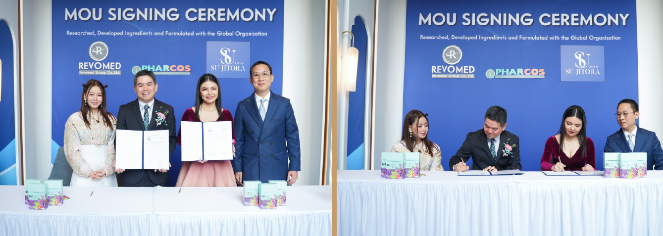 และล่าสุดเมื่อวันที่ 29 มกราคม 2567 ที่ผ่านมา ความเคลื่อนไหวครั้งสำคัญในวงการสกินแคร์และอาหารเสริม เมื่อ คุณ วาสนา อินทะแสง หรือคุณเมย์ CEO, REVOMED (Thailand) โรงงานให้บริการแบบครบวงจร สำหรับผู้ที่อยากผลิตครีม เครื่องสำอาง สินค้าเพื่อสุขภาพและความงาม และอาหารเสริมทุกรูปแบบ ภายใต้แบรนด์ของลูกค้าเอง สามารถรับผลิตได้ทั้งในและต่างประเทศ ได้จับมือ กับ Ichimaru Pharcos เข้าร่วมลงนามบันทึกข้อตกลงความร่วมมือ (MOU) ร่วมกับคุณสุจิตรา เหล็กศรี เจ้าของ แบรนด์ SUJitora