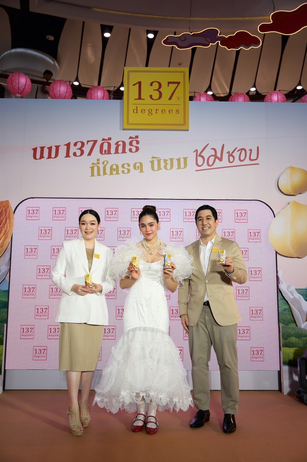 “รู้สึกดีใจมากที่ได้ร่วมงานกับแบรนด์ 137 ดีกรี® ยิ่งพอได้เป็นพรีเซนเตอร์คนแรกยิ่งรู้สึกปลื้มใจมาก ๆ เพราะก็ต้องบอกว่าแบรนด์นี้เป็นเบอร์ 1 ของวงการนมทางเลือก ที่เราเลือกดื่มมานาน ได้รับความนิยมเพิ่มมากขึ้นเรื่อย ๆ ซึ่งนม 137 ดีกรี® ผลิตด้วยส่วนผสมเข้มข้น คั้นสดจากถั่วเต็มเมล็ดและไม่มีกระบวนการที่เปลี่ยนไปเป็นน้ำตาล จึงได้สารอาหารเข้มข้นเน้น ๆ คุณประโยชน์คับกล่อง ก็อยากให้ทุกคนได้ลอง ชมรับรองว่าจะติดใจค่ะ”