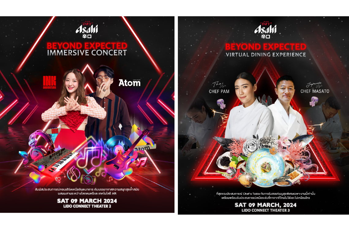 ต่อยอดความพิเศษอีกขั้นด้วย Virtual Dining Experience โดย 2 สุดยอดเชฟระดับมิชลินสตาร์ อย่าง เชฟแพม-พิชญา สุนทรญาณกิจ แห่งร้านโพทง ตัวแทนในฝั่งของอาหารสไตล์ไทย และ เชฟมาซาโตะ แห่งร้าน Sushi Masato ตัวแทนในฝั่งของอาหารสไตล์ญี่ปุ่นจะมาร่วมกันออกแบบเมนูสุด พิเศษในรูปแบบของ Thai x Japanese Fusion Concept ที่มีความ Premium และ Exclusive ในสไตล์ Chef’s Table อีกทั้งเป็น Perfect Pairing ที่ออกแบบมาเพื่อรับประทานคู่กับเครื่องดื่มอาซาฮี ส่วนไฮไลท์อยู่ที่การนำเสนอผ่าน แสง สี เสียง แนว Digital Art ที่จะเปิดประสบการณ์ในการชิม Chef’s Table ในรูปแบบใหม่ เเละไม่เคยเกิดขึ้นที่ไหนมาก่อน!