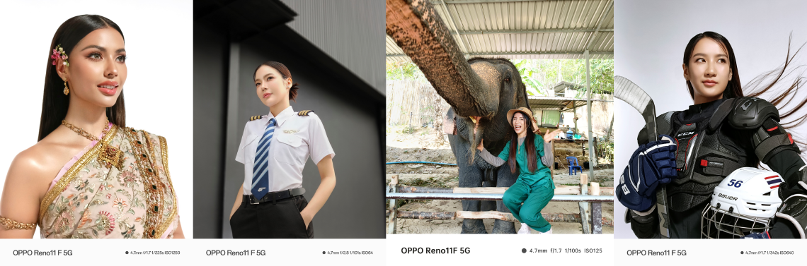 โดยงานนี้ OPPO ได้ถ่ายทอดความงดงามที่แตกต่างกันไปผ่านตัวแทนหญิงสาวทั้ง 4 คนที่นำเสนอความงามในรูปแบบที่แตกต่างกันที่ไม่จำเป็นต้องยึดติดกับมาตรฐานของสังคม ทั้ง “แอนโทเนีย โพซิ้ว” เจ้าของตำแหน่งรองอันดับ 1 มิสยูนิเวิร์ส ที่มาพร้อมความเป็นตัวของตัวเอง ส่งต่อความสวยจากภายในสู่ภายนอก , “ก้อย กรกช” นักบินหญิงผู้เก่งรอบด้าน , “โบว์ รัชดาภรณ์” หรือ โบว์ หมอรักษาช้าง สัตวแพทย์หญิงผู้มีความกล้าหาญและหัวใจที่เปี่ยมด้วยความรัก และ “น้ำตาล วิลาสินี” สาวแกร่งฮอกกี้น้ำแข็งทีมชาติไทย ผู้มาพร้อมด้วยหัวใจที่ทรงพลัง ไม่ว่าจะเป็นใคร ภาพพอร์ตเทรตจาก OPPO Reno11 F 5G ก็สามารถเก็บครบทุกความโดดเด่น เผยให้เห็นถึงความงามที่หลากหลาย และมอบความภาคภูมิใจให้ทุกคนมั่นใจในความงามของตนเอง