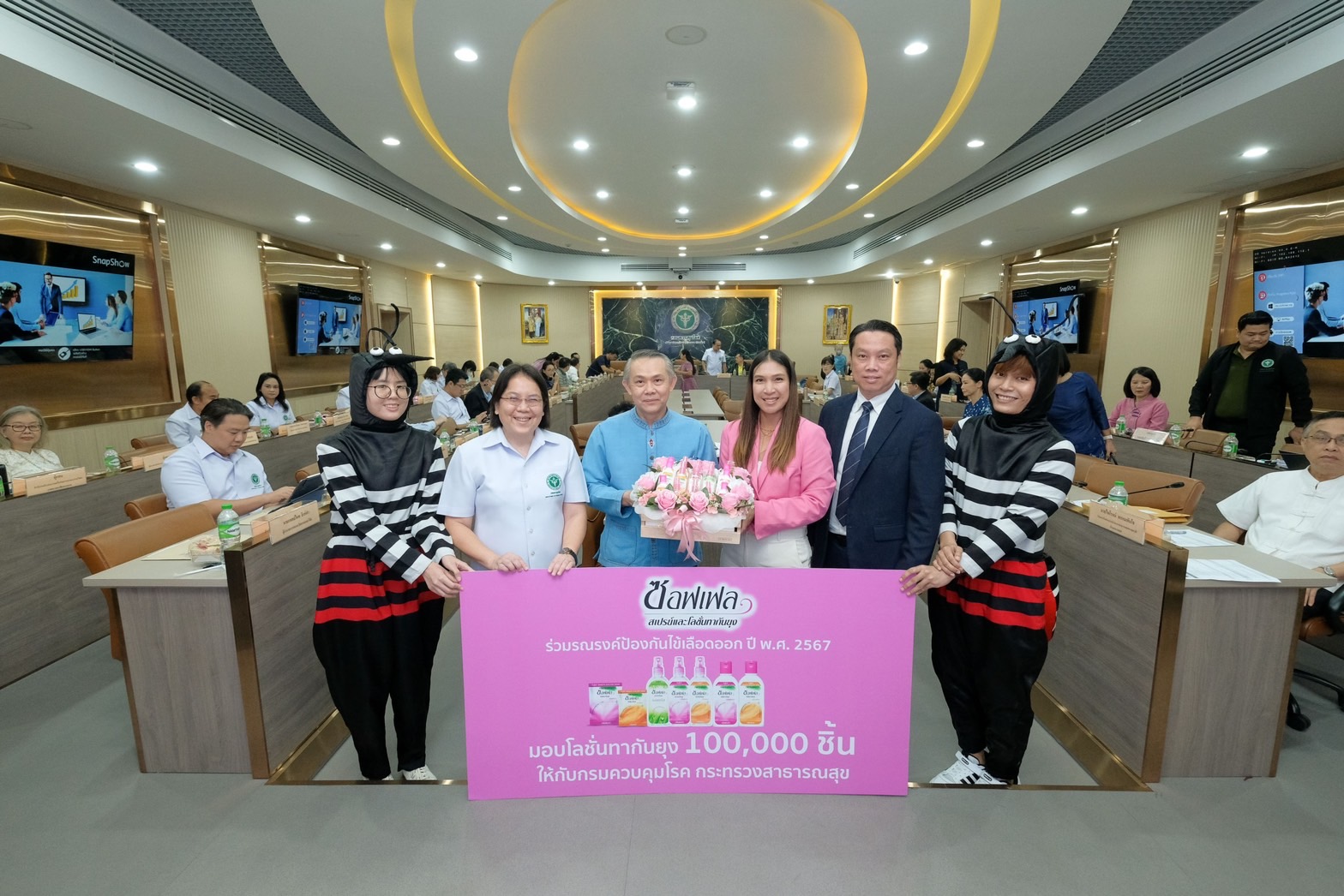 วันที่ 29 มีนาคม 2567 คุณจิรายุ ภักดียิ่งยง รองกรรมการผู้จัดการอาวุโส บริษัท ซี.พี.คอนซูเมอร์โพรดักส์ จำกัด และ คุณเมนาท มีสมมนต์ ผู้จัดการผลิตภัณฑ์ ประจำประเทศไทย กลุ่มบริษัท เอเนซีส กรุ๊ป ผู้ผลิตสเปรย์และโลชั่นทากันยุงซอฟเฟล ได้มอบซอฟเฟล จำนวน 100,000 ชิ้น ใน “โครงการรณรงค์ป้องกันไข้เลื อดออก” เพื่อเป็นส่วนหนึ่งในการรณรงค์ ป้องกันไข้เลือดออกให้กั บกรมควบคุมโรค โดยได้รับเกียรติจาก นายแพทย์ธงชัย กีรติหัตถยากร อธิบดีกรมควบคุมโรค กระทรวงสาธารณสุข เป็นผู้รับมอบเพื่อนำไปแจกจ่ ายให้แก่ สำนักงานป้องกันควบคุมโรคทั้ง 12 แห่งทั่วประเทศ ได้แก่ สำนักงานป้องกันควบคุมโรคที่ 1 จังหวัดเชียงใหม่, สำนักงานป้องกันควบคุมโรคที่ 2 จังหวัดพิษณุโลก, สำนักงานป้องกันควบคุมโรคที่ 3 จังหวัดนครสวรรค์, สำนักงานป้องกันควบคุมโรคที่ 4 จังหวัดสระบุรี, สำนักงานป้องกันควบคุมโรคที่ 5 จังหวัดราชบุรี, สำนักงานป้องกันควบคุมโรคที่ 6 จังหวัดชลบุรี, สำนักงานป้องกันควบคุมโรคที่ 7 จังหวัดขอนแก่น, สำนักงานป้องกันควบคุมโรคที่ 8 จังหวัดอุดรธานี, สำนักงานป้องกันควบคุมโรคที่ 9 จังหวัดนครราชสีมา, สำนักงานป้องกันควบคุมโรคที่ 10 จังหวัดอุบลราชธานี, สำนักงานป้องกันควบคุมโรคที่ 11 จังหวัดนครศรีธรรมราช และสำนักงานป้องกันควบคุมโรคที่ 12 จังหวัดสงขลา เพื่อส่งต่อความห่ วงใยและความปลอดภัยให้กั บประชาชนทั่วประเทศ