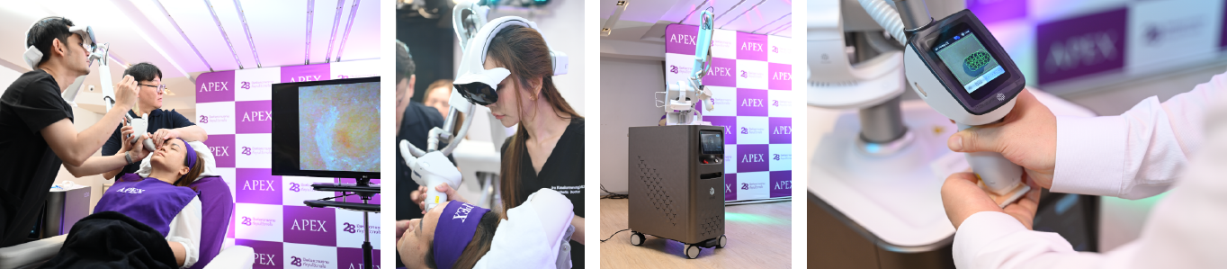 สำหรับงาน APEX EXCLUSIVE EVENT กับโปรแกรม “LASER AI อัจฉริยะ” ถือเป็นการตอกย้ำความสำเร็จ เนื่องจากเลเซอร์ AI เป็นการรักษาปัญหาผิวอย่างมีประสิทธิภาพ โดยโปรแกรมดังกล่าวจะสามารถช่วยหลีกเลี่ยงไม่ก่อให้เกิดผลเสียต่อบริเวณผิวหนังที่ไม่มีปัญหา อีกทั้งผู้ที่มีปัญหาส่วนใหญ่ จากผลการวิจัยกว่า 70% พบว่าการรักษาด้วยเครื่องเลเซอร์อัจฉริยะ สามารถรักษาให้หายขาดได้เพียงครั้งเดียว โดยงานนี้ พญ. รัตติยา เตชะขจรเกียรติ แพทย์ผู้เชี่ยวชาญประจำ APEX MEDICAL CENTER ได้ขึ้นมาพูดคุยตอบข้อสงสัยเกี่ยวกับโปรแกรมดังกล่าว พร้อมทั้ง Dr. Hyun Jun Park แพทย์ผู้เชี่ยวชาญจากประเทศเกาหลี ได้ให้เกียรติเข้าร่วมเทรนด์นิ่ง และเทคนิคใหม่ๆ แก่แพทย์ประจำ APEX อีกทั้งยังได้รับเกียรติจาก คุณไอซ์ ปรีชญา พงษ์ธนานิกร ดารานักแสดงชื่อดัง มาร่วมแบ่งปันประสบการณ์การดูปัญหาผิวหน้าในครั้งนี้อีกเช่นกัน