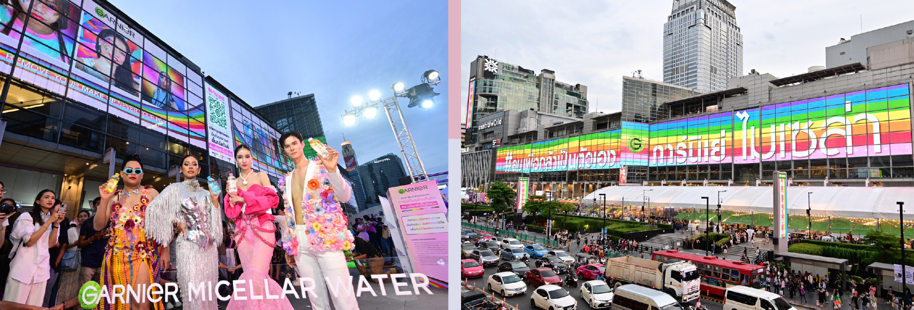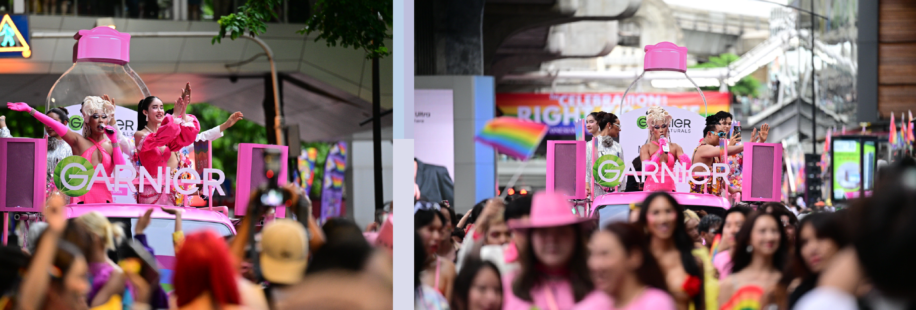 พร้อมจัดบิวตี้สเปซ ที่ลานหน้าเซ็นทรัลเวิลด์ ให้ทุกเพศวัยได้แต่งตัวเปลี่ยนชุด หรือจะลบเมคอัพด้วย การ์นิเย่ ไมเซล่า คลีนซิ่ง วอเตอร์ ซึ่งเป็นไมเซล่า ยอดขายอันดับ 1 ก็มีให้พร้อมสรรพ รวมทั้งกิจกรรมที่เรียกเสียงฮือฮาจากชาวเรา คือโชว์โพลแดนซ์ ที่หน้าสยามพารากอน เชื้อเชิญทุกคนมาจอยความกล้าเป็นตัวเอง และที่สำคัญงานนี้ ได้รับเกียรติจาก 4 ตัวแทน Garnier Pride Squad ได้แก่ โยชิ - รินรดา ธุระพันธ์, โยชิ - นิมิต มนัสพล, จูดี้ - เดี่ยว จารุกิตติ์ และ Badmixy มิกซ์ เฉลิมศรี ร้องเพลงและแดนซ์กันให้สะใจแบบโนสนโนแคร์ตลอดทางบนขบวนพาเหรด ที่มาในคอนเซ็ปต์ “Let’s Celebrate PRIDE with Garnier”
