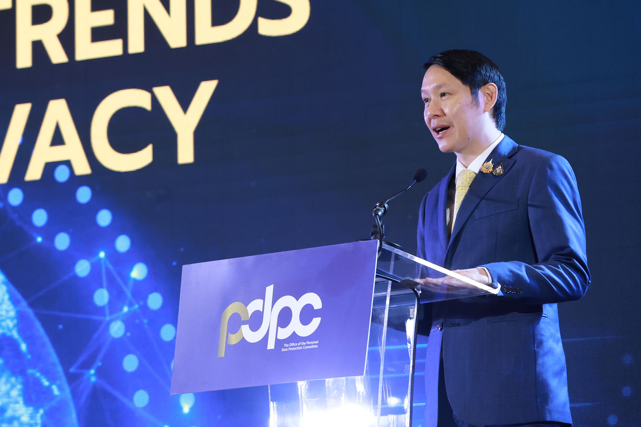 นายประเสริฐ จันทรรวงทอง รัฐมนตรีว่าการกระทรวงดิจิทัลเพื่อเศรษฐกิจและสังคม กล่าวว่า กระทรวงดิจิทัลเพื่อเศรษฐกิจและสังคม หรือ DE ตระหนักถึงความสำคัญของการละเมิดข้อมูลส่วนตัวเป็นอย่างมาก ที่ผ่านมาได้มอบหมายให้ สำนักงานคณะกรรมการคุ้มครองข้อมูลส่วนบุคคล (สคส.) หรือ PDPC ทำงานในเชิงรุก เพื่อกระตุ้นให้ภาครัฐ ภาคเอกชน รวมถึงประชาชน ตระหนักถึงความสำคัญของข้อมูลส่วนตัวที่เปรียบเสมือนสมบัติล้ำค่า ดังนั้นที่ผ่านมา กระทรวงดิจิทัลเพื่อเศรษฐกิจและสังคม จึงได้วางนโยบายการทำงานให้เข้ากับสถานการณ์ปัจจุบัน ยุคที่ธุรกิจและการตลาดขับเคลื่อนด้วยข้อมูล หรือการนำ Big Data และ AI มาใช้กันอย่างแพร่หลายทั่วโลก พร้อมกับการถ่ายโอน หรือแบ่งปันข้อมูลส่วนบุคคลระหว่างประเทศ นำไปสู่การเข้าถึง และการใช้ข้อมูลส่วนบุคคลในมิติต่าง ๆ เพิ่มมากขึ้น ซึ่งการเปิดเผยหรือการใช้งานข้อมูลในทางที่ผิดทำให้เกิดการตื่นตัว และความตระหนักรู้ทั่วโลกเกี่ยวกับสิทธิในการคุ้มครองข้อมูลส่วนบุคคล รวมถึงบทบาทและความรับผิดชอบของผู้ที่มีหน้าที่ตามกฎหมายในการจัดการข้อมูลส่วนบุคคล และการบังคับใช้กฎหมายโดยหน่วยงานที่เกี่ยวข้อง