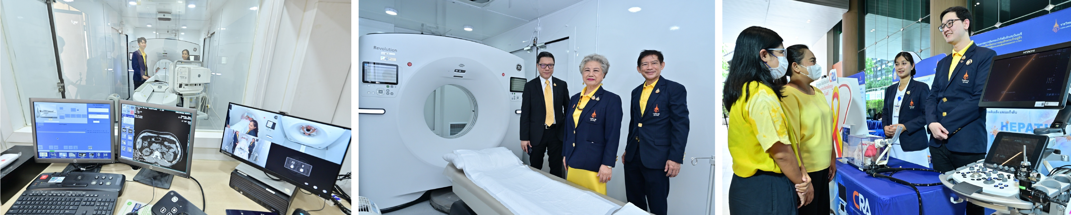 นวัตกรรมรถเอกซเรย์คอมพิวเตอร์พร้อมด้วยเทคโนโลยี AI โดย ศ.พญ.จิรพร เหล่าธรรมทัศน์ คณบดีคณะเทคโนโลยีวิทยาศาสตร์สุขภาพ ราชวิทยาลัยจุฬาภรณ์ และ อ.ดร.วิทยา สังขะรัตน์ รองคณบดีด้านวิจัยนวัตกรรม เทคโนโลยีสารสนเทศและวิเทศสัมพันธ์ คณะเทคโนโลยีวิทยาศาสตร์สุขภาพ ราชวิทยาลัยจุฬาภรณ์ ซึ่งเป็นนวัตกรรมที่ออกแบบโดยคนไทยในช่วงสถานการณ์การระบาดของไวรัสโควิด-๑๙ จึงเหมาะใช้คัดกรองรอยโรคในปอดโดยนำมาใช้ดูแลสุขภาพปอดของคนไทยในพื้นที่กรุงเทพมหานครและปริมณฑลที่ได้รับผลกระทบด้านมลภาวะทางอากาศสูงของฝุ่นละอองจิ๋ว PM ๒.๕ เฉลิมพระเกียรติพระบาทสมเด็จพระเจ้าอยู่หัวเนื่องในโอกาสพระราชพิธีมหามงคลเฉลิมพระชนมพรรษา ๖ รอบ จำนวน ๗๒๐ ราย เพื่อให้ประชาชนได้เข้าถึงการตรวจคัดกรองสภาวะปอดด้วยเครื่องเอกซเรย์คอมพิวเตอร์ความเร็วสูงแบบใช้ปริมาณรังสีต่ำพร้อมด้วยระบบการจัดท่าและการสแกนอัตโนมัติ วินิจฉัยรอยโรคร่วมกับระบบเทคโนโลยีปัญญาประดิษฐ์ภายในรถที่มีความปลอดภัยสูงสุดจากการติดเชื้อหรือแพร่เชื้อโรคด้วยระบบกรองอากาศความเร็วสูงและแสงยูวี ๒๒๒ นาโนเมตร โดยนอกจากจะช่วยให้ประชาชนในโครงการได้รับการประเมินสภาพปอดจากภัยสุขภาพฝุ่นจิ๋วแล้ว ยังเป็นประโยชน์ต่อยอดสู่การขับเคลื่อนและพัฒนานโยบายทางด้านการจัดการมลพิษของประเทศชาติต่อไป โดยประชาชนกลุ่มเป้าหมายที่สามารถเข้าร่วมโครงการ ฯ จะต้องอยู่ในช่วงอายุ ๒๐ - ๖๐ ปี มีพื้นที่พักอาศัยและพื้นที่ทำงานในเขตกรุงเทพมหานคร หรือ ปริมณฑล ไม่อยู่ในระหว่างการตั้งครรภ์ หรือ มีความเสี่ยงต่อการตั้งครรภ์ ไม่มีประวัติการสูบบุหรี่ ไม่เคยได้รับการวินิจฉัยว่าเป็นโรคเกี่ยวกับปอด เช่น โรคมะเร็งปอด วัณโรคปอด โรคปอดอักเสบ โรคถุงลมโป่งพอง เป็นต้น ไม่มีประวัติการติดเชื้อไวรัสโคโรนา ๒๐๑๙ ที่ลงปอด (Pneumonia COVID-19) ไม่เคยมีประวัติการผ่าตัดนำเนื้อปอดออก (Lobectomy, Pneumonectomy) โดยรถเอกซเรย์คอมพิวเตอร์มีจุดจอดให้บริการอยู่ที่ CRA HALL อาคารสำนักงานราชวิทยาลัยจุฬาภรณ์ ถนนแจ้งวัฒนะ
