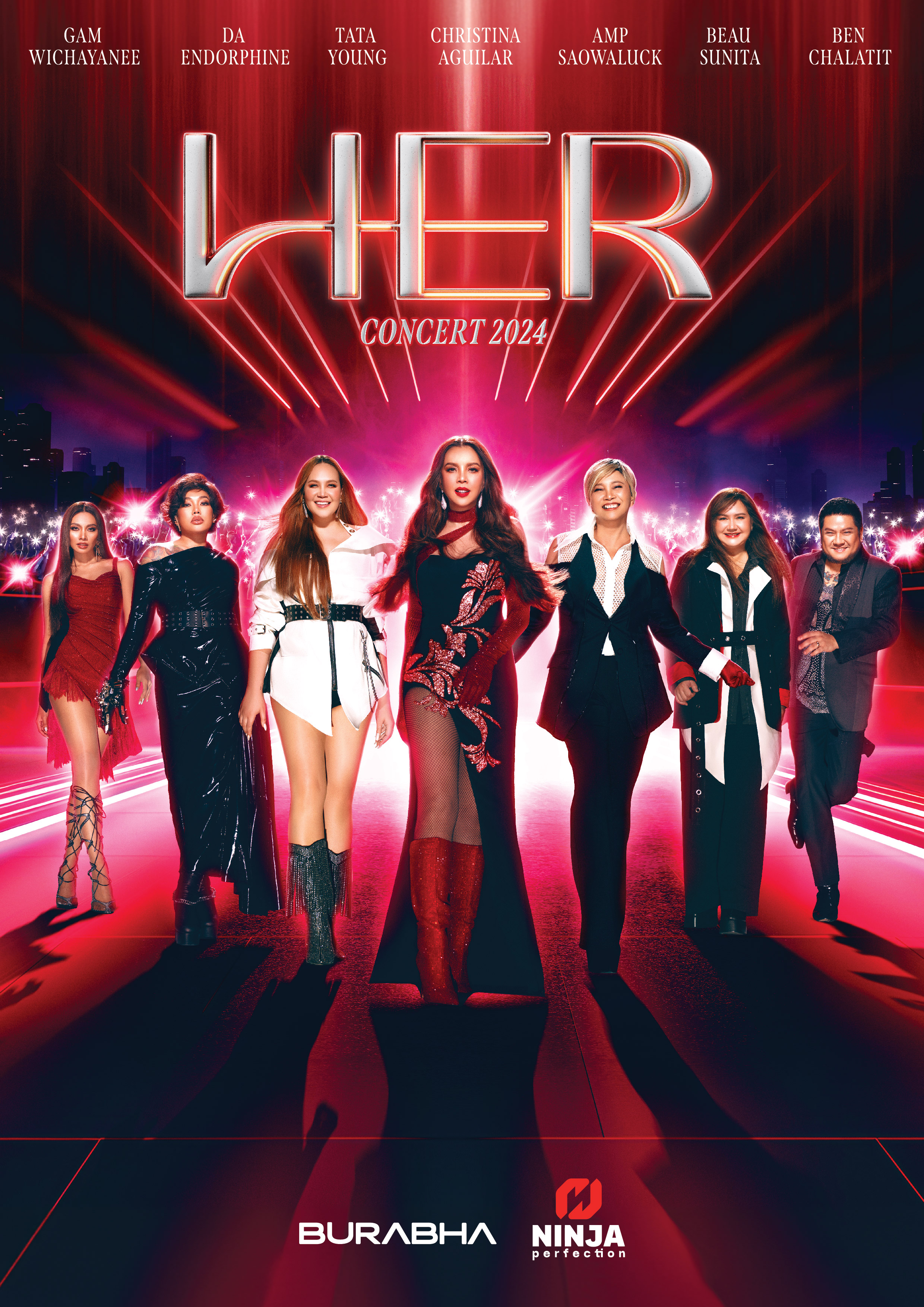 “HER CONCERT 2024” คอนเสิร์ตสุดยิ่งใหญ่ที่รวบรวม 7 ตัวแม่ดีว่า คริสติน่า อากีล่าร์, แอม เสาวลักษณ์, ทาทา ยัง, โบ สุนิตา, เบน ชลาทิศ, ดา เอ็นโดรฟิน และแก้ม วิชญาณี พร้อมแขกพิเศษคนสำคัญ ที่มาจับไมค์ ดวลพลังเสียง กับโชว์สุดยิ่งใหญ่ กับวงดุริยางค์เครื่องลมแห่งมหาวิทยาลัยเกษตรศาสตร์ (Kasetsart Winds) จะจัดขึ้นในวันอาทิตย์ที่ 22 กันยายน 2567 ณ Ballroom Hall 1- 4, ศูนย์การประชุมแห่งชาติสิริกิติ์ จองบัตรกันได้ตั้งแต่ 30 กรกฎาคม 2567 เวลา 10.00 เป็นต้นไป ทาง www.thaiticketmajor.com หรือ ThaiTicketMajor ทุกช่องทาง