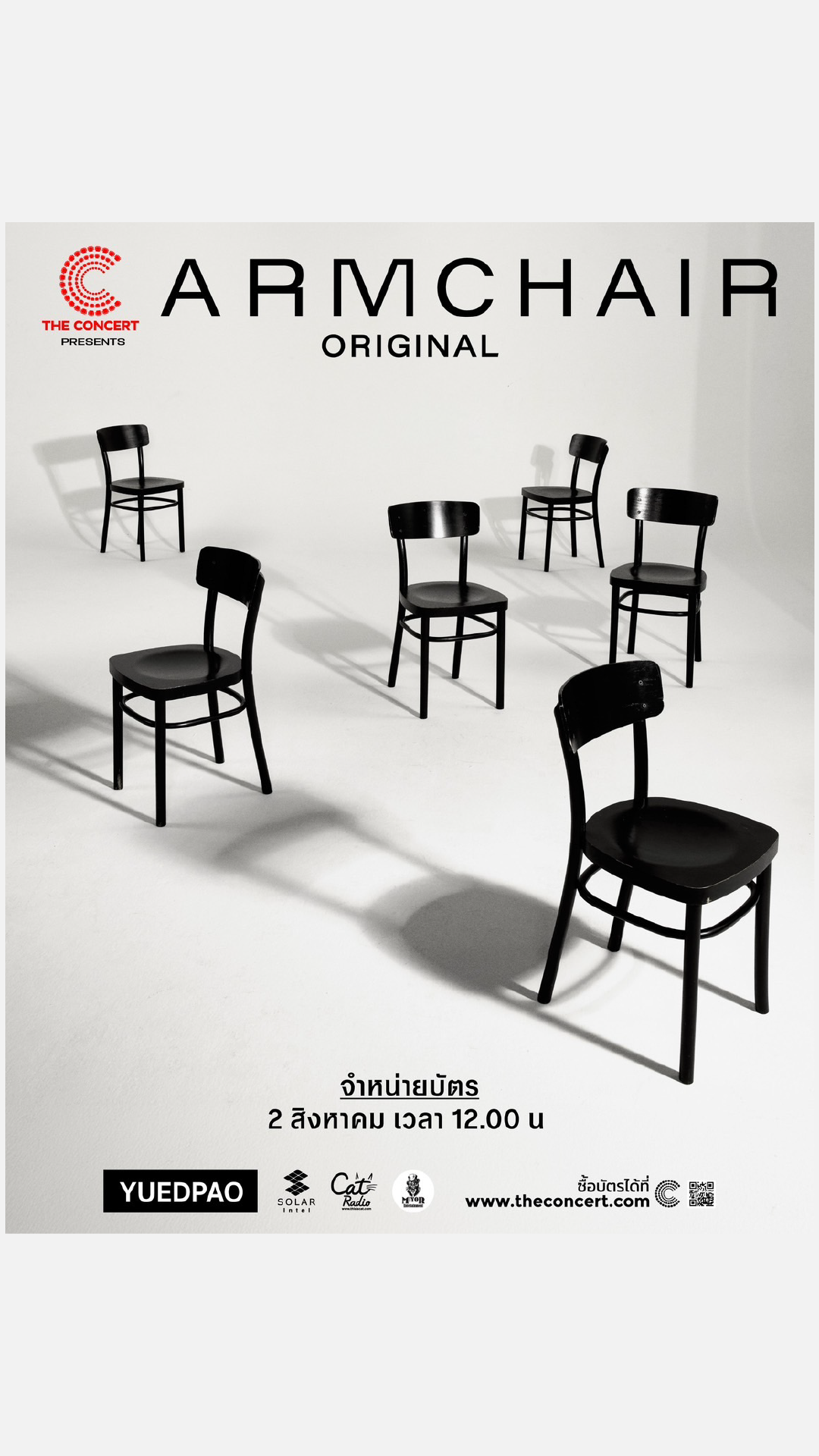 เพียงรอบการแสดงเดียวเท่านั้นสำหรับ THE CONCERT Present "ARMCHAIR Original Concert" จัดขึ้นในวัน เสาร์ ที่ 9 พฤศจิกายน 2567 เวลา 19.00 น. สถานที่ : THUNDER DOME MUANG THONG THANI บัตรราคา : 4,500 / 3,500 /3,000 / 2,500 / 1,800 บาท และ เฉพาะบัตร 4500 บาท จะได้รับเสื้อยืด LIMITED EDITION และ POSTER พร้อมลายเซ็นต์ สมาชิกครบวง (เฉพาะงานนี้เท่านั้น) เปิดจำหน่ายบัตรวันที่ 2 สิงหาคม พ.ศ. 2567 ตั้งแต่เวลา 12.00 น. เป็นต้นไปผ่านทาง The Concert Application (สามารถใช้ได้ทั้ง iOS และ Android) หรือ www.theconcert.com เท่านั้น