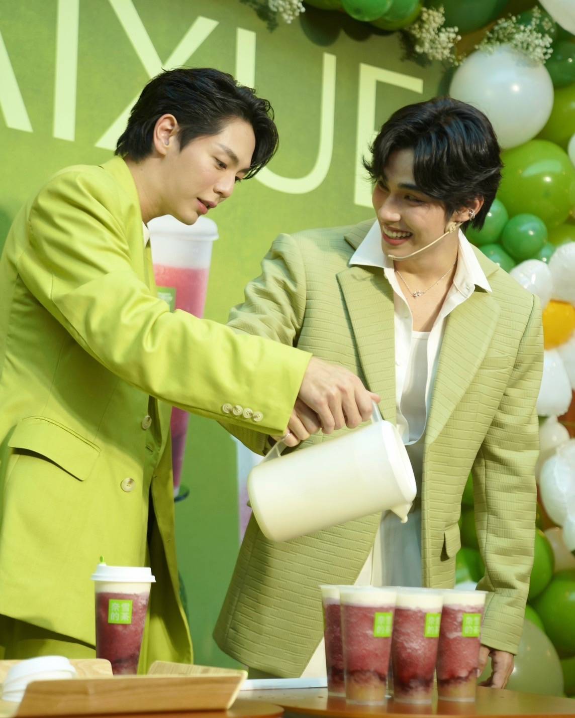 ไทยและชาวต่างชาติ ได้สัมผัสรสชาติเครื่องดื่มต้นตำรับที่ส่งตรงจากประเทศจีนร่วมกัน สำหรับการเปิดตัว NAIXUE สาขา 2 ณ ศูนย์การค้าเซ็นทรัลเวิลด์ ก็ได้คู่จิ้นสุดฮอตจาก “MY STAND-IN ตัวนาย ตัวแทน” อย่าง อัพ ภูมิภัฒน์ เอี่ยมสอาด และ ภูมิ ภูริพันธ์ ทรัพย์แสงสวัสดิ์ ที่มาสร้างประสบการณ์ความสดชื่นด้วยการทำเครื่องดื่มและเบเกอรี่ เสิร์ฟความหวานให้กับสื่อมวลชนและแฟนคลับได้ชิมรสชาติเครื่องดื่มจากวัตถุดิบคุณภาพ งานนี้ทำเอาแฟนๆ ได้อิ่มท้องและอิ่ม ไปกับ 2 หนุ่ม