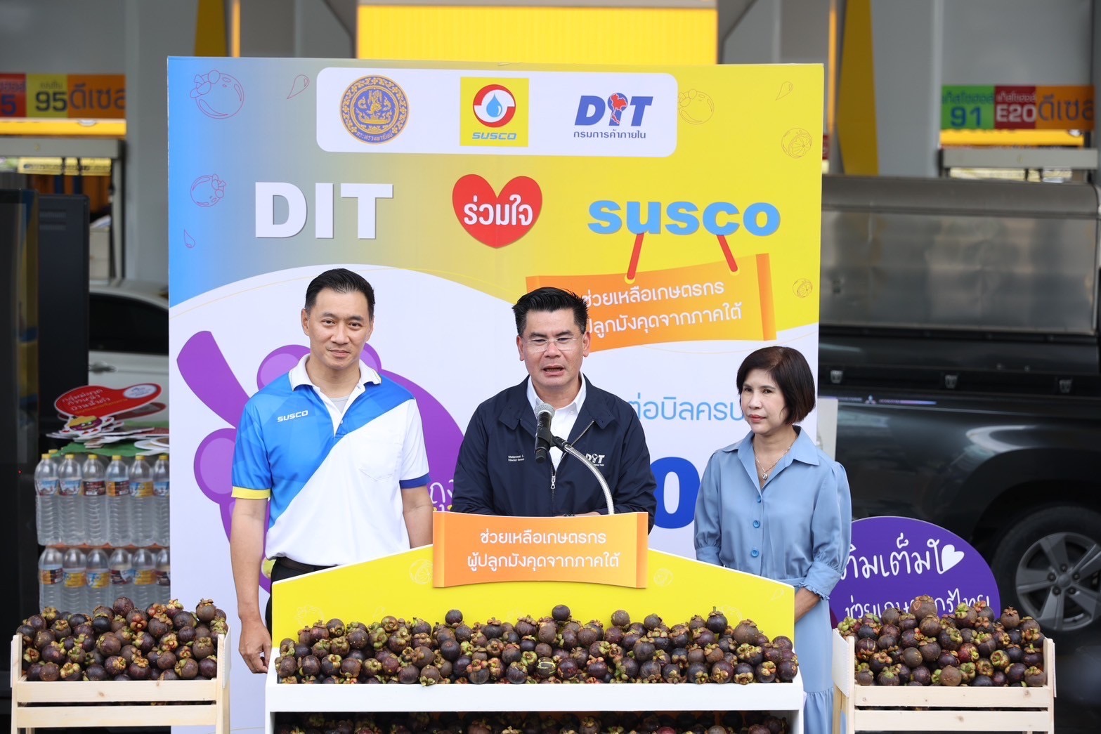 นายวัฒนศักย์ เสือเอี่ยม อธิบดีกรมการค้าภายใน กระทรวงพาณิชย์ ผนึกกำลัง 4 สถานีบริการน้ำมันรายใหญ่ "พีที พีทีที สเตชั่น บางจาก และซัสโก้" เข้ารับซื้อผลผลิตมังคุดใต้ จาก จังหวัดชุมพร และ นครศรีธรรมราช กว่า 1,000 ตัน นำแจกเป็นของสมนาคุณให้กับผู้เติมน้ำมัน 29-31 สิงหาคมนี้ เข้ามาเติมน้ำมัน แจกของสมนาคุณ #เติมเต็มใจช่วยเกษตรกรไทยผู้ปลูกมังคุด รวม 3 วัน หรือจนกว่าของจะหมด