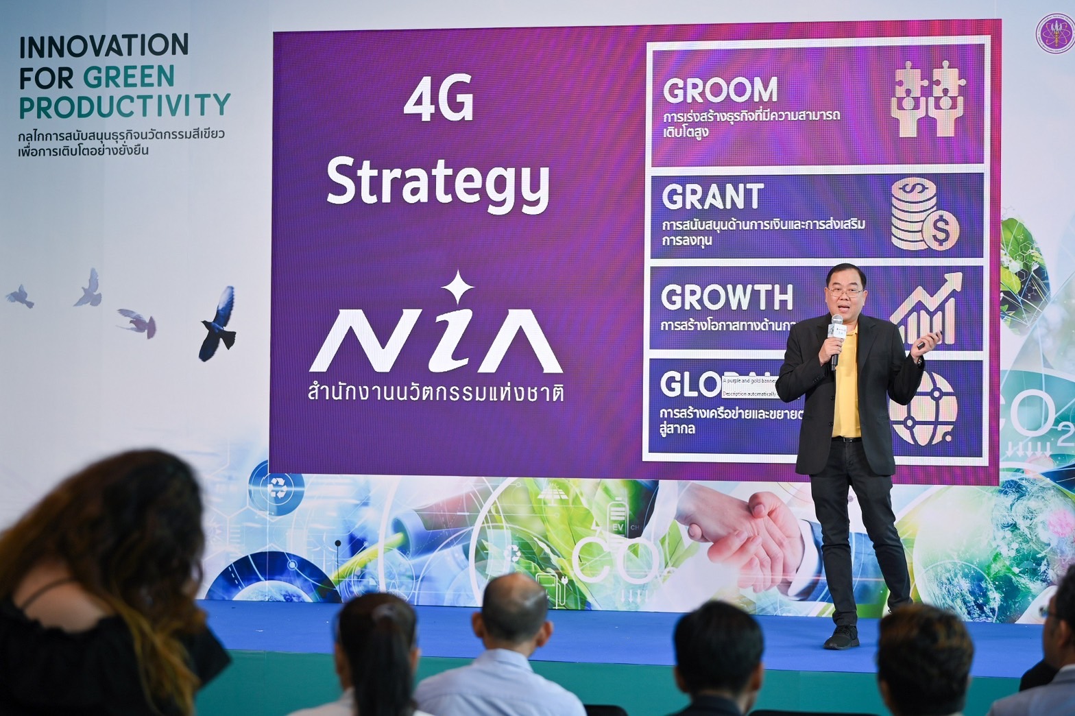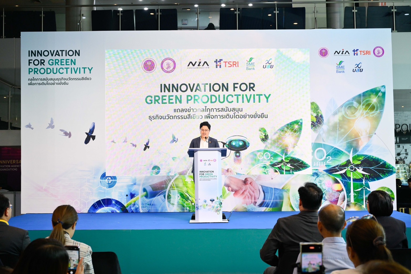“ที่ผ่านมา NIA เห็นโอกาสและศักยภาพในการส่งเสริมและสนับสนุนธุรกิจนวัตกรรมสีเขียวเพื่อสร้างการเติบโตอย่างยั่งยืน โดยอาศัยกลไกการสนับสนุนโครงการนวัตกรรมมุ่งเป้า (Thematic Innovation) และนวัตกรรมดี...ไม่มีดอกเบี้ย ในหลายสาขา เช่น โครงการด้านเศรษฐกิจหมุนเวียนและเศรษฐกิจคาร์บอนต่ำ (Circular Economy) จำนวน 18 โครงการ วงเงินสนับสนุนไม่น้อยกว่า 40.79 ล้านบาท โครงการด้านพลังงานสะอาด (Clean energy) จำนวน 15 โครงการ วงเงินสนับสนุนไม่น้อยกว่า 40.53 ล้านบาท โครงการนวัตกรรมยานยนต์ไฟฟ้า (Electric Vehicle: EV) จำนวน 37 โครงการ วงเงินสนับสนุนไม่น้อยกว่า 109.493 ล้านบาท และโครงการ Climate Tech Acceleration Program 2024 รวมการสนับสนุนไม่น้อยกว่า 190 ล้านบาท และเพื่อเป็นการขยายโอกาสต่อยอดความสำเร็จของผู้ประกอบการทั้งเอสเอ็มอีและสตาร์ทอัพในการเข้าถึงแหล่งเงินทุนอื่น NIA จึงได้ลงนามความร่วมมือกับ SME D Bank ภายใต้ ‘โครงการส่งเสริมและพัฒนาศักยภาพผู้ประกอบการด้านนวัตกรรม ปี 2567-2568’ เพื่อสนับสนุนทางการเงิน และการบ่มเพาะผู้ประกอบการระดับภูมิภาคทั้งกลุ่มเอสเอ็มอีและสตาร์ทอัพที่สนใจใน ‘ธุรกิจนวัตกรรมสีเขียว’ เพื่อยกระดับและพัฒนาผลิตภัณฑ์หรือบริการให้มีขีดความสามารถในการแข่งขันทางธุรกิจ โดยจะสนับสนุนผู้ประกอบการที่มีศักยภาพและนวัตกรรมดีที่ผ่านการรับรองจาก NIA ให้เข้าถึงแหล่งทุนสินเชื่อดอกเบี้ยพิเศษจาก SME D Bank พร้อมรับสิทธิประโยชน์พิเศษจากโครงการ ‘นวัตกรรมดี...ไม่มีดอกเบี้ย’ โดย NIA จะสนับสนุนอัตราดอกเบี้ยให้แทนในช่วง 3 ปีแรก ซึ่งจะช่วยให้ผู้ประกอบการสามารถนำนวัตกรรมไปต่อยอด ลงทุน ขยาย ปรับปรุง ปรับเปลี่ยน หรือหมุนเวียน สร้างกิจการเติบโตได้เต็มศักยภาพต่อไป” ดร. กริชผกา กล่าว