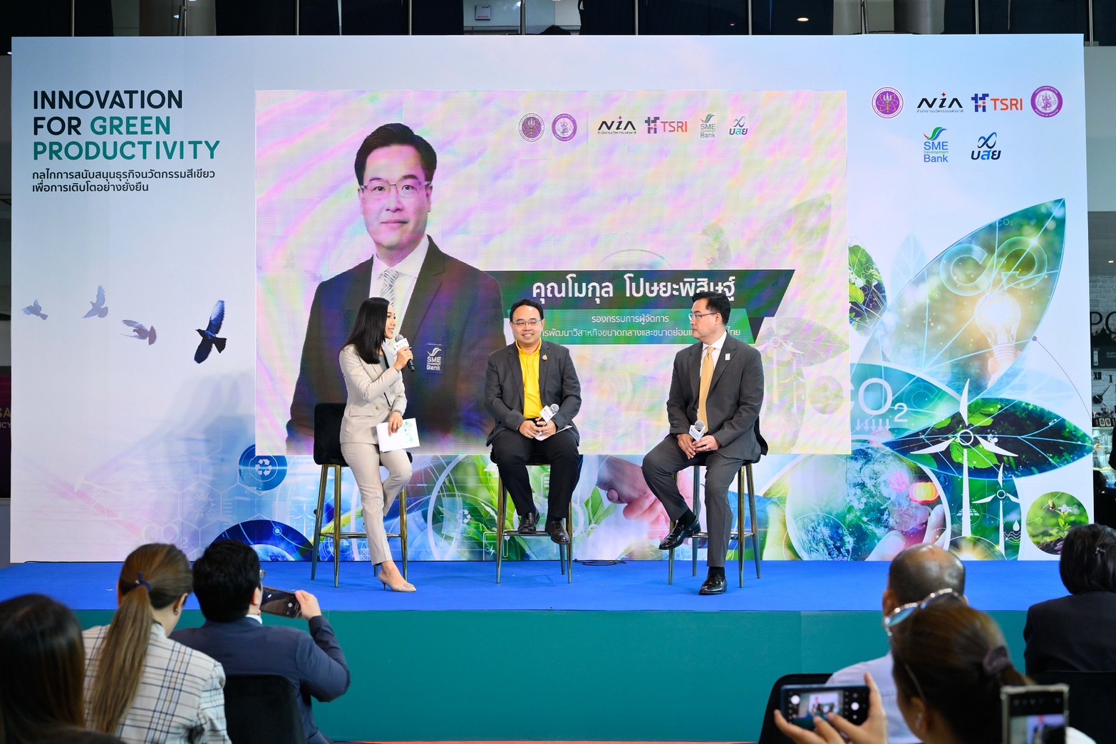 นายโมกุล โปษยะพิสิษฐ์ รองกรรมการผู้จัดการ SME D Bank ได้รับมอบหมายจากนายพิชิต มิทราวงศ์ กรรมการผู้จัดการ SME D Bank กล่าวในการแถลงความร่วมมือกิจกรรม “กลไกการสนับสนุนธุรกิจนวัตกรรมสีเขียว เพื่อการเติบโตอย่างยั่งยืน” ว่า “ปัจจุบันการทำธุรกิจเปลี่ยนแปลงไปจากอดีตอย่างสิ้นเชิง ความร่วมมือครั้งนี้จึงมีความสำคัญที่จะสนับสนุนให้ผู้ประกอบการเอสเอ็มอีเข้าถึงนวัตกรรมและเทคโนโลยี ช่วยยกระดับสู่การเป็นธุรกิจนวัตกรรมสีเขียว ทำให้เพิ่มขีดความสามารถการแข่งขัน ลดต้นทุนจากการใช้พลังงานสะอาด และปรับตัวเข้ากับกฎกติกาใหม่ระดับสากลที่กำหนดให้ธุรกิจต้องเป็นมิตรกับสิ่งแวดลอม อีกทั้ง ส่งเสริมให้เกิดการเชื่อมโยงจับคู่ธุรกิจระหว่างผู้พัฒนานวัตกรรมกับผู้ใช้นวัตกรรรม สร้างการลงทุน เพิ่มประสิทธิภาพให้แก่อุตสาหกรรมในประเทศต่อไป ซึ่ง SME D Bank พร้อมสนับสนุน “ด้านการเงิน” เพื่อเปิดโอกาสให้ผู้ประกอบการเอสเอ็มอีที่มีนวัตกรรมดี และต้องการยกระดับสู่ธุรกิจสีเขียว หรือผ่านการรับรองจาก NIA ให้เข้าถึงสินเชื่อจาก SME D Bank เช่น โครงการสินเชื่อ ‘SME Green Productivity’ เงื่อนไขสุดพิเศษ ดอกเบี้ยพิเศษร้อยละ 3 ต่อปี คงที่ 3 ปีแรก วงเงินกู้สูงสุดถึง 10 ล้านบาท ผ่อนชำระนานสูงสุด 10 ปี ปลอดชำระหนี้เงินต้น 12 เดือนแรก มีหรือไม่มี หลักทรัพย์ค้ำประกัน ก็กู้ได้ และ ฟรี! ค่าธรรมเนียมค้ำประกัน 4 ปีแรก เป็นต้น นอกจากนั้น การได้รับสิทธิประโยชน์เพิ่มเติมจาก NIA ในโครงการ “นวัตกรรมดี...ไม่มีดอกเบี้ย” ที่จะช่วยสนับสนุนอัตราดอกเบี้ยให้แทนในช่วง 3 ปีแรกนั้น มีส่วนสำคัญมาก เพราะช่วยให้ผู้ประกอบการเอสเอ็มอี ลดต้นทุนธุรกิจ สามารถเดินหน้าพัฒนายกระดับธุรกิจสู่ธุรกิจนวัตกรรมสีเขียวได้อย่างราบรื่น”