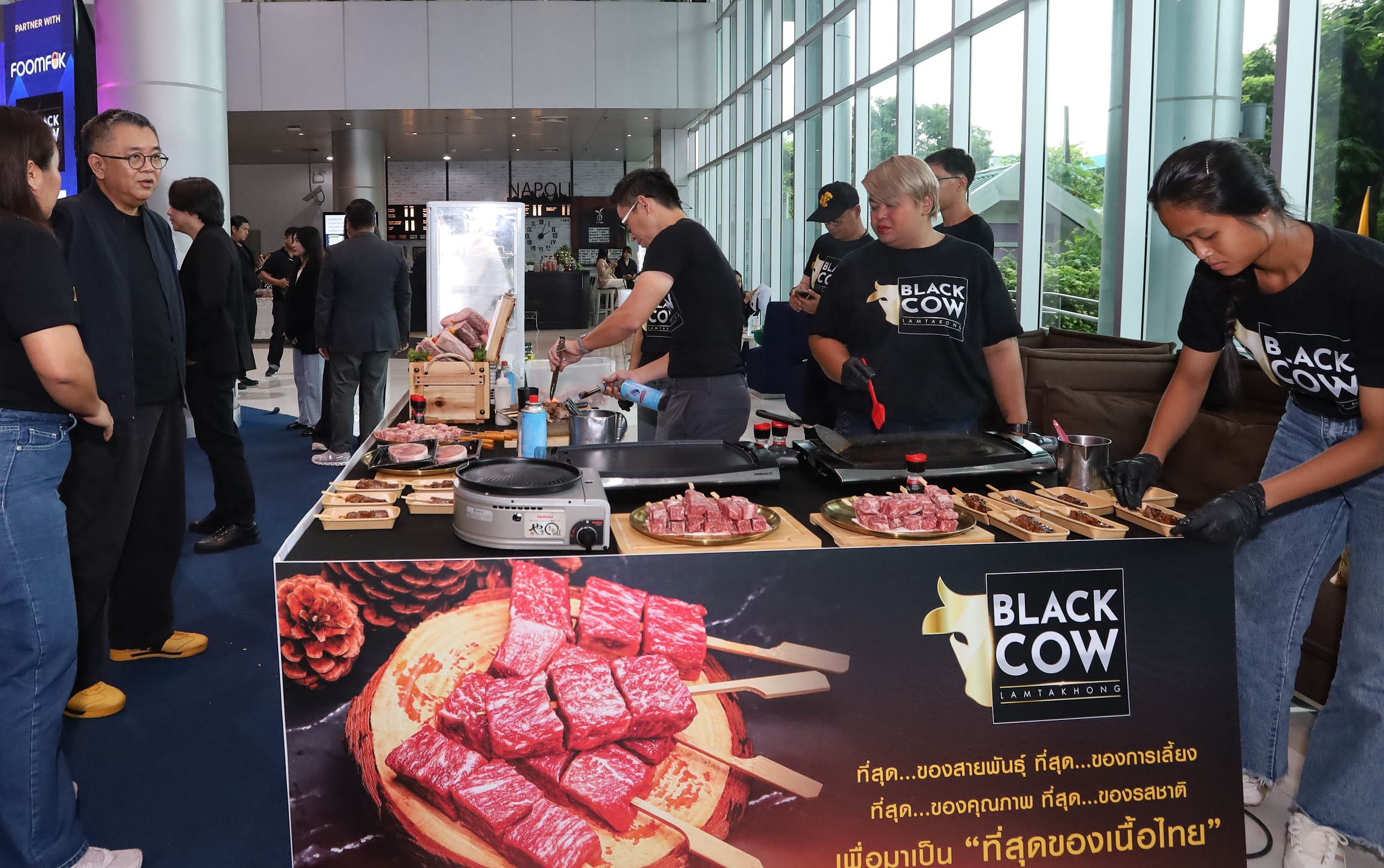 นายรุ่งธรรม พุ่มสีนิล ในฐานะที่สุดของนักสร้างเรื่องราว และผู้ร่วมก่อตั้ง บริษัท ฟูมฟ์ฟัก จำกัด กล่าวว่า “Lam Takhong Black Cow” เป็นเนื้อที่มีครบทุกมิติในความเป็นที่สุด ไม่ว่าจะเป็น ‘สายพันธ์ุ’ ที่คัดสรรผสมผสานมาอย่างดี ‘การเลี้ยง’ ที่พิถีพิถันเป็นอย่างมาก อาหารมีทั้งสูตรมาตรฐาน สูตรพิเศษ ที่สำคัญเรามีสูตรลับอีกด้วย ‘คุณภาพ’ ไม่เป็นสองรองใคร ส่งผลให้ ‘รสชาติ’ ที่ออกมาพูดได้ว่า ‘เฉพาะตัวแบบไร้ที่ติ’ อีกสิ่งที่อยากบอกก็คือ เราไม่ใช่คนรับเนื้อมาสร้างแบรนด์ขาย แต่เราสร้างสรรค์เนื้อขึ้นมาเพื่อผู้บริโภค สิ่งนี้ถูกคิด วิเคราะห์ ลองถูกลองผิด ปรับปรุง และพัฒนามาเกือบสิบปี ถึงเวลาแล้วที่คนไทยควรได้ลิ้มลองและรับรู้เรื่องราวเหล่านี้และสเต็ปต่อไปคือ อยากให้โลกรู้ว่าเนื้อที่ดีไม่ได้มีแค่แองกัสหรือวากิว แต่ยัง ‘Lam Takhong Black Cow’ อยู่ด้วย ในมุมธุรกิจเมื่อเรามีโปรดักส์ที่สุดยอดขนาดนี้ เราได้วางกลยุทธ์ทางการตลาดมุ่งเน้นไปทั้ง B2C และ B2B เรียบร้อยแล้วในทุกช่องทางการจัดจำหน่าย ไม่ว่าจะเป็น OFFLINE / ONLINE และ HORECA ซึ่งจะเริ่มปูพรมการสื่อสารและการขายที่ไตรมาสที่ 4 ของปี คือตั้งแต่ตุลาคมนี้เป็นต้นไป ทั้งหมดนี้ขอสรุปสั้น ๆ ว่า เมื่อเราคิดสิ่งที่ดี ทำสิ่งที่ดี และที่สำคัญคือเราทำได้ เราเชื่อมั่นว่า ความสำเร็จจะรอเราอยู่”