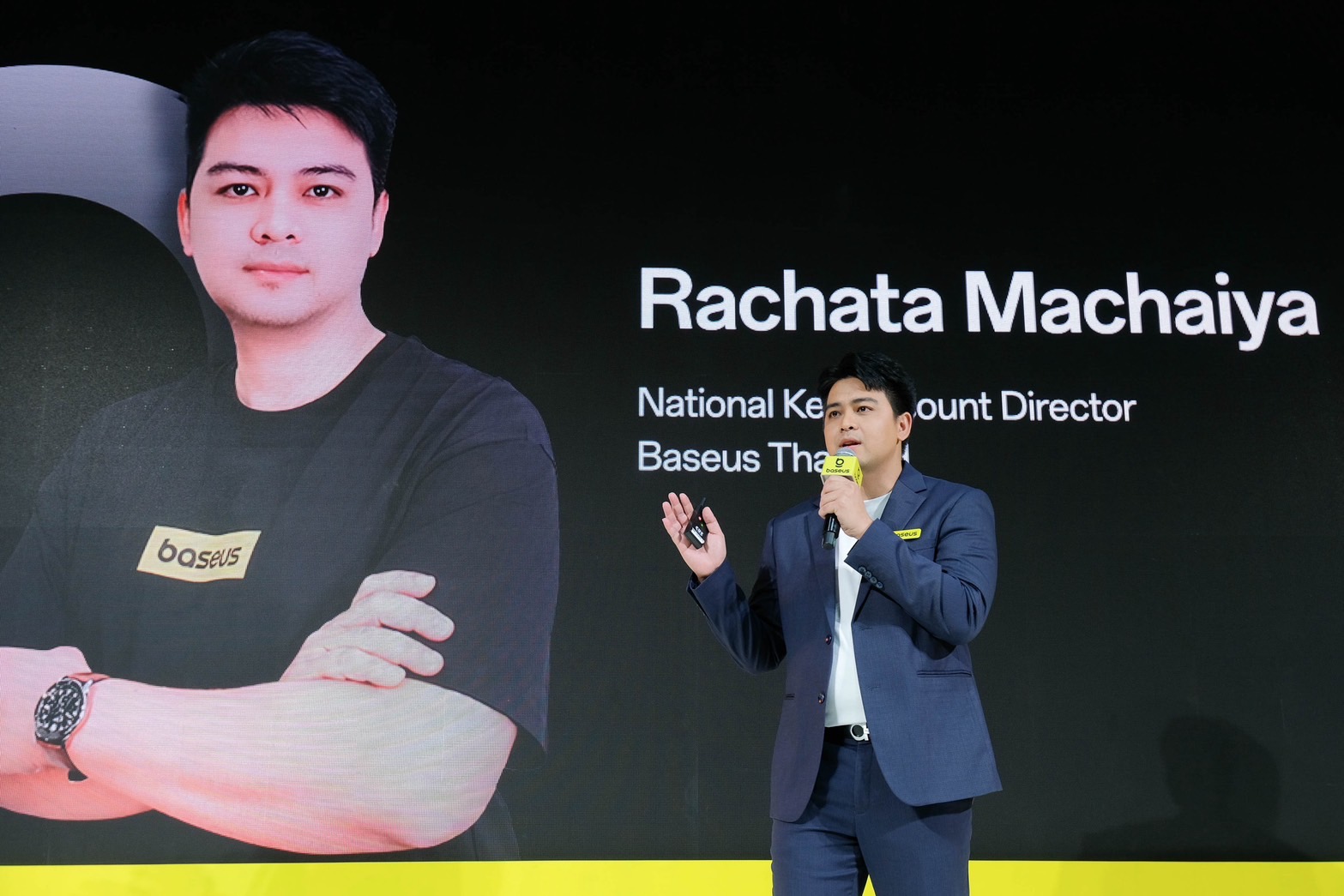 ภายในงานได้รับเกียรติจากคุณ Jack Zhang Baseus APAC Director และ คุณรชต มาชัยยะ ผู้อำนวยการฝ่ายขายลูกค้ารายใหญ่ของ BaseusThailand พร้อมชมไฮไลท์โชว์เปิดตัวพรีเซนเตอร์ “ กลัฟ คณาวุฒิ ไตรพิพัฒนพงษ์ ” มาพร้อมกับบทเพลงอันไพเราะจากนั้นร่วมพูดคุยแชร์ไลฟ์สไตล์การเลือกใช้สมาร์ทแกดเจ็ตของBaseus ซึ่งเปรียบเสมือนมีแอคเซสเซอรี่ช่วยประดับเสริมลุคให้ตอบโจทย์ทุกไลฟ์สไตล์ในชีวิตประจำวัน โดดเด่น ทันสมัย ไม่ซ้ำใคร ซึ่งทาง Baseus Thailand มองว่าคุณกลัฟ - คณาวุฒิ ไตรพิพัฒนพงษ์ เป็นตัวแทนคนรุ่นใหม่ ซึ่งมีศักยภาพเหมาะสม และลงตัว ซึ่งคุณกลัฟเป็นนักแสดงที่มีความสามารถ ลุคหล่อ เท่ มีสไตล์ มีภาพลักษณ์ที่ดีและเป็นมิตรกับแฟนคลับทุกคน ซึ่งภาพลักษณ์นี้สอดคล้องกับแบรนด์ Baseus ที่นำเสนอเทคโนโลยี "ใช้งานง่าย มั่นใจได้ ใส่ใจคุณ" และยังเป็นศิลปินที่มีฐานแฟนคลับทั้งในประเทศไทยและต่างประเทศอย่างหนาแน่น โดยเฉพาะกลุ่มคนรุ่นใหม่หรือGen Z ที่เป็นกลุ่มเป้าหมายหลักของแบรนด์ ซึ่งเป็นจุดแข็งที่ช่วยเสริมสร้าง Brand Awareness ให้ Baseus พร้อมแชร์ประสบการณ์ดีๆ ในการใช้ผลิตภัณฑ์Baseus ไปยังกลุ่มคนรุ่นใหม่ ให้รู้จักและ เลือกช้อปอุปกรณ์เสริมของBaseus เพื่อความบันเทิงในชีวิตประจำวันและหวังว่าจะช่วยผลักดันให้ยอดขายสินค้าเติบโตในประเทศไทยอย่างต่อเนื่องในปีต่อๆไป