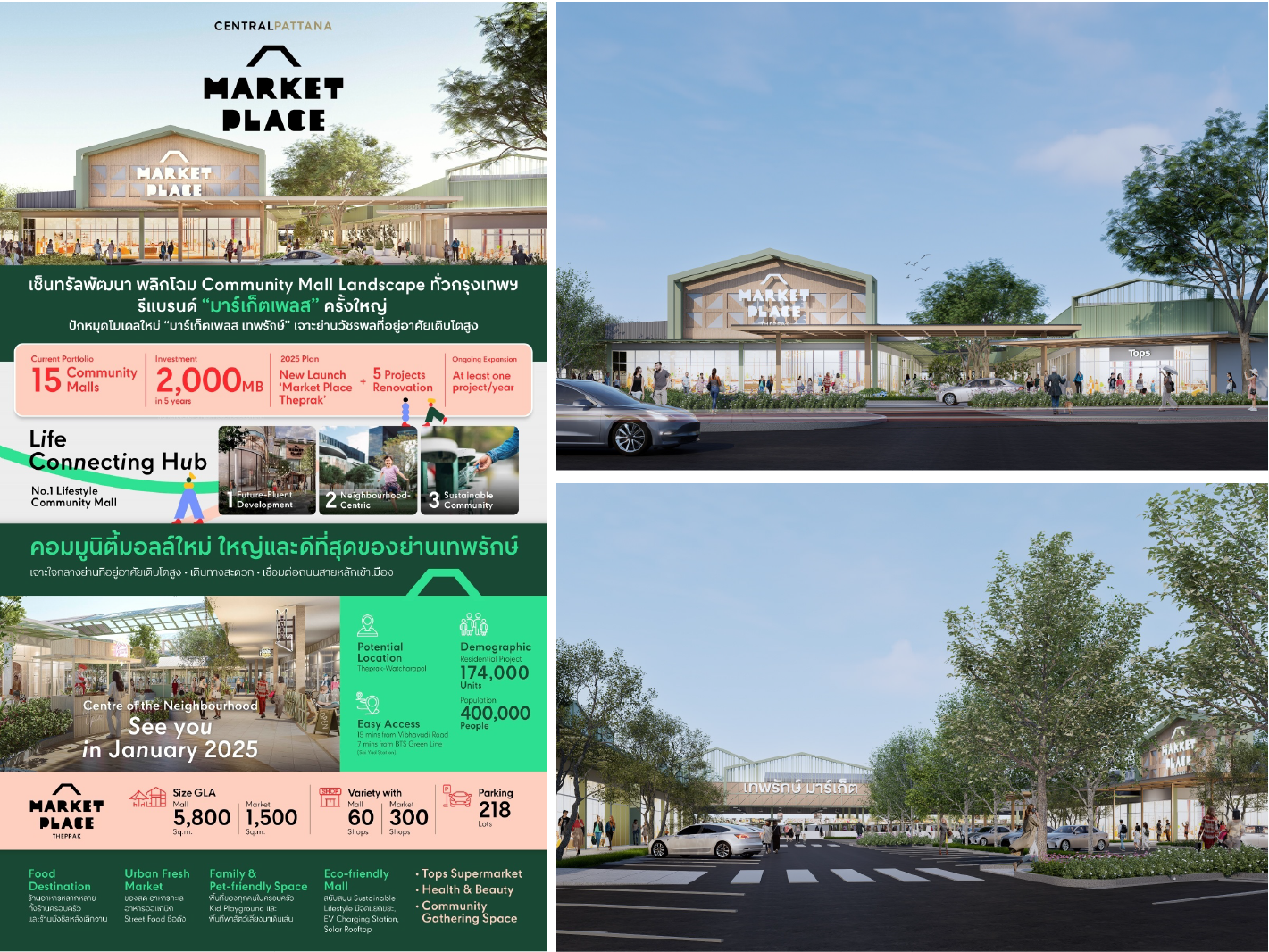 ภาพลักษณ์ใหม่ทันสมัยที่สุดของ “Market Place” ชูคอนเซ็ปต์ Community Mall บวกโมเดลใหม่ Urban Fresh Market สะดวกทุกวัน ทันสมัย น่าเดิน ครบจบในที่เดียวด้วยซูเปอร์มาร์เก็ต ร้านค้า ร้านอาหาร และบริการครบทุกประเภท ชูกลยุทธ์ ‘Life Connecting Hub’ ตอกย้ำแนวคิด Future-Fluent Development, Neighbourhood-Centric เติมเต็มความต้องการ Fragmented Demand ของลูกค้าในแต่ละย่าน เชื่อมโยงชุมชน & Pet-Friendly และ Sustainable Community ใส่ใจคุณภาพชีวิต ดูแลสิ่งแวดล้อม ประกาศเตรียมเปิด “Market Place เทพรักษ์” ม.ค. 68 ใหม่ที่สุด ใหญ่ที่สุด ดีที่สุด เจาะใจกลางย่านเทพรักษ์-วัชรพล โซนกรุงเทพฯ ตอนเหนือ รองรับที่อยู่อาศัยเติบโต ขนทัพร้านค้า ร้านอาหารกว่า 360 ร้าน ทั้งในโซนมอลล์และตลาด พร้อม Tops Supermarket, ร้านบริการ Health & Beauty, PetClub, และพลาดไม่ได้กับอาหารสด, อาหารทะเล, วัตถุดิบชั้นเลิศ และสตรีทฟู้ดเจ้าดังมากมาย