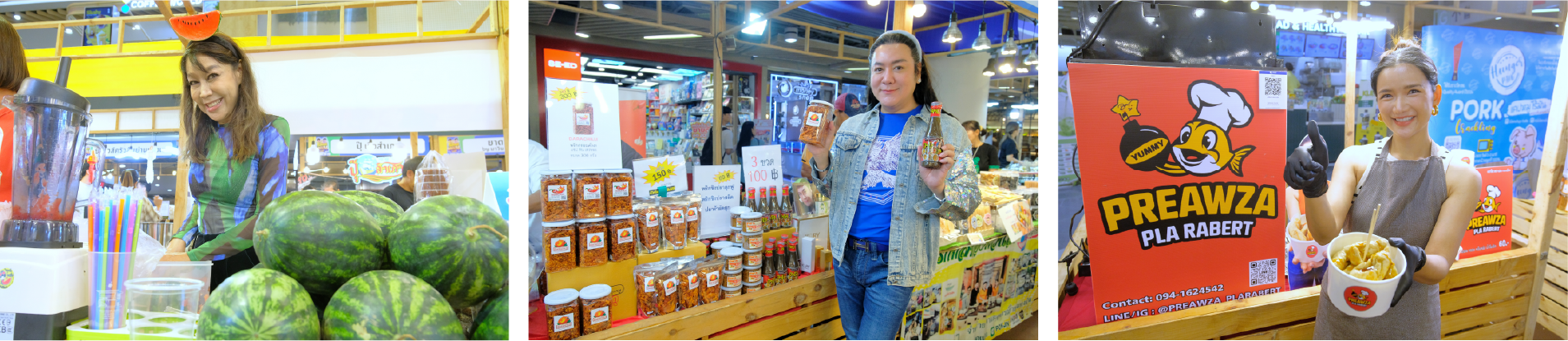 เปิดงานวันแรกคึกคัก!! ล้นหลามไปด้วยเหล่าสายช้อป สายชิม และคนชอบกินของอร่อย ที่เตรียมมา ช้อปของกิน และมองหาของขวัญของฝากสำหรับเทศกาลปีใหม่2568 ที่ใกล้มาถึงแล้ว โดยเฉพาะร้านดาราที่แฟนๆ คุ้นหน้าคุ้นตา อาทิ สยามชาไทย by เด่นคุณ,น้ำพริกปุยแสบปาก by ปุยฝ้าย / สมูทตี้ดีใจ by ผัดไท ดีใจ / ธงธงฉ่ำ by ธงธง มกจ๊ก / Top s Homemade by ท็อป ดารณีนุช / ก๋วยเตี๋ยวเรือลำพาย by เฟิร์ส เอกพงศ์ /ข้าวมันไก่กาต๊าก, Waan's Bakery by น้ำหวาน zaza / เปรี้ยวซ่าปลาระเบิด by เปรี้ยว AF / Hunger Pung อร่อยเต็มคำ By อะตอม / แม่จวงยกนิ้ว by จุ๊บแจง วิมลพันธ์ /โก้ ธีรศักดิ์ by น้ำปลาร้าป้าโก้ มาร่วมจอย เปิดบูธอาหารให้แฟนๆ เลือกช้อปของอร่อย ของดี ถูกปาก เข้าคิวแน่นๆ
