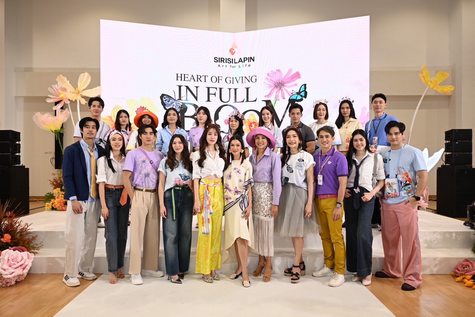 งดงามของผลิตภัณฑ์การกุศลในคอลเลกชันนี้ผ่านการแสดงแบบแฟชั่นโชว์สุดตระการตาด้วยไฮไลท์การแสดงฟินาเล่ดั่งดอกไม้บาน จากศิลปินดารา พร้อมด้วยนักศึกษาและแพทย์จากราชวิทยาลัยจุฬาภรณ์ โดยมี FULL BLOOM MODEL นำโดย เกรซ -กาญจน์เกล้า ด้วยเศียรเกล้า , ฮาน่า - ทัศนาวลัย จักรพงษ์ , หน่อย – บุษกร วงศ์พัวพันธ์ , หมอก้อง - สรวิชญ์ สุบุญ,ปีเตอร์แพน - ทัศน์พล วิวิธวรรธน์, มาริลิน เคท การ์ดเนอร์, ส้มโอ - ยลรตี โคมกลอง, มิล - ศรุต นวประดิษฐกุล , โบ๊ท - ธารา ทิพา , เจิ้น - วีระกฤษณ์ วัชรศรีวราห์ ร่วมแสดงแบบแฟชั่นโชว์การกุศลในคอลเลกชันนี้ซึ่งมีผลิตภัณฑ์หลากหลายไอเทมที่รังสรรค์จากลวดลายภาพวาดฝีพระหัตถ์ “ดอกไม้และผีเสื้อ” อันทรงคุณค่าขององค์สิริศิลปิน อาทิ เสื้อเชิ้ต เสื้อโปโล เสื้อครอป เสื้อยืด กระเป๋าในรูปทรงต่าง ๆ กระเป๋าเดินทาง หมวก ผ้าพันคอ เนคไท หมอนอิง หมอนรองคอ ร่ม ชุดถ้วยจานชามเซรามิค ชุดถ้วยกาแฟ และน้ำหอม ทั้งนี้ ผลิตภัณฑ์คอลเลกชันดังกล่าวเปิดให้ผู้มีจิตศรัทธาได้ร่วมบริจาคเพื่อมอบเป็นของขวัญชิ้นพิเศษให้กับตัวเองและคนที่คุณรักเพื่อส่งต่อความสุขในช่วงเทศกาลต้อนรับปีใหม่นี้ โดยรายได้สมทบทุนมูลนิธิศรีสวางควัฒน ในพระอุปถัมภ์ ฯ เพื่อช่วยเหลือผู้ป่วยที่ขาดแคลนด้อยโอกาส และสนับสนุนการจัดหาเครื่องมือทางการแพทย์ให้กับโรงพยาบาลจุฬาภรณ์ ราชวิทยาลัยจุฬาภรณ์
