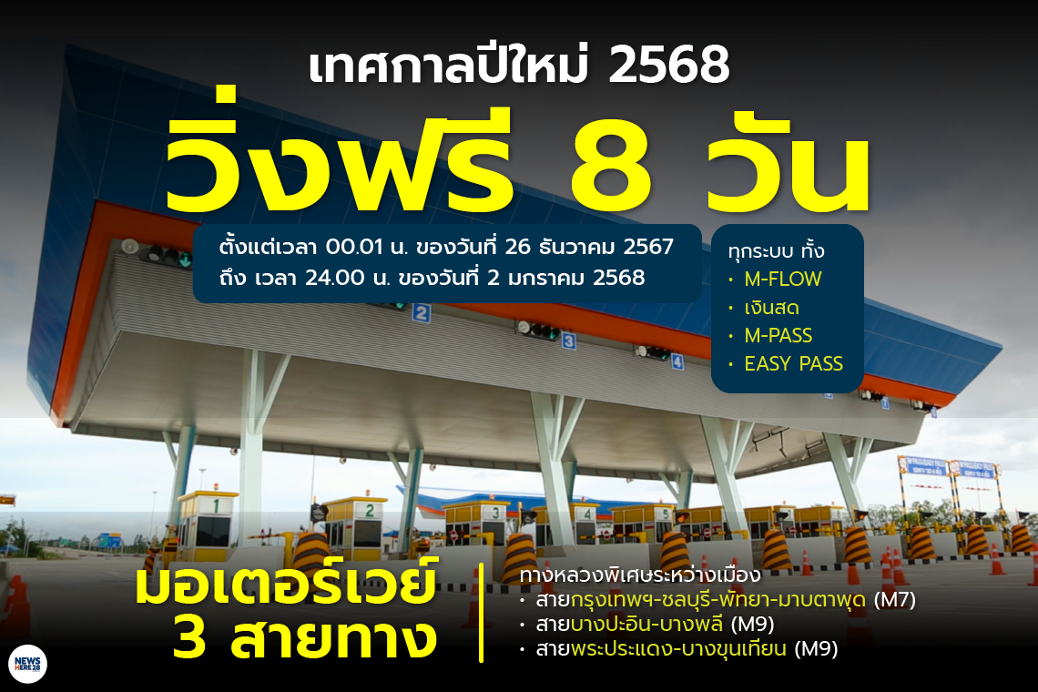 การยกเว้นค่าธรรมเนียมฯ ทุกระบบ จะช่วยบรรเทาปัญหาจราจรติดขัด รองรับการเดินทางกลับภูมิลำเนาและการท่องเที่ยงของประชาชนในช่วงเทศกาลปีใหม่ เพื่อให้เกิดการเดินทางที่รวดเร็วและสะดวกสบาย รวมถึงเพื่อลดภาระค่าใช้จ่ายของประชาชน