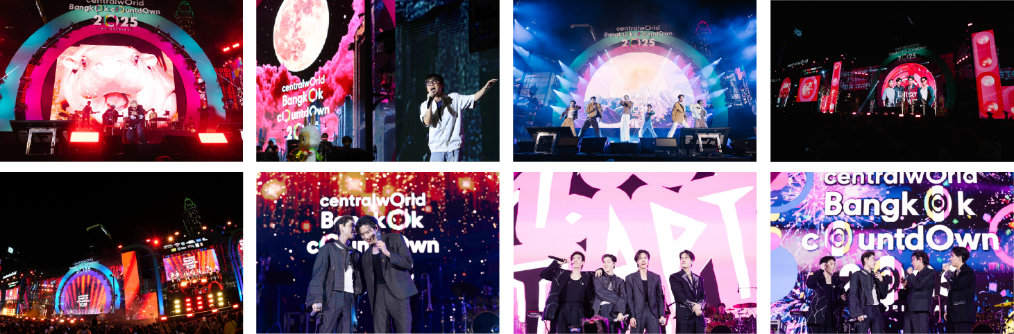 สนุก Non-stop กับศิลปิน Asian Sensation ระดับแนวหน้า นำโดย 5 Headliners ที่ได้รับความนิยมอย่างล้นหลาม พีพี-กฤษฏ์ และ บิวกิ้น-พุฒิพงศ์ ศิลปินแห่งยุคที่สร้างความประทับใจทุกเวที นนท์ ธนนท์ เจ้าของเสียงทรงพลังและเพลงฮิตที่ครองใจคนฟัง JAYLERR x Ice Paris คู่ดูโอสุดฮอตที่มาแรงแห่งปี เสริมทัพด้วย The Rising Stars อย่าง ZeeNunew สองหนุ่มที่กำลังมาแรงในวงการ PiXXiE วงเกิร์ลกรุ๊ปสุดน่ารักพร้อมเพลงป๊อปติดหู และ T-Pop Blockbuster Hits อย่าง BUS because of you I shine, PROXIE วงบอยแบนด์มากความสามารถ และ 4EVE เกิร์ลกรุ๊ปเบอร์หนึ่งที่ไม่เคยทำให้แฟนๆ ผิดหวัง ร่วมด้วย The Master ระดับตำนานของวงการดนตรีอย่าง Tattoo Colour เจ้าของเพลงฮิตตลอดกาล UrboyTJ แร็ปเปอร์สายเท่ และ Tree Man Down กับแนวดนตรีอันเป็นเอกลักษณ์ นอกจากนี้ ยังมีโชว์พิเศษจาก centralwOrld Countdown Angels นำโดย ฟรีน สโรชา และ เบ็คกี้ รีเบคก้า คู่จิ้นที่มอบความสุขและแรงบันดาลใจ หลิงหลิง ศิริลักษณ์ และ ออม กรณ์นภัส สองศิลปินที่เต็มเปี่ยมด้วยพลัง และการปรากฏตัวครั้งแรกบนเวทีเคานต์ดาวน์ของ โอปอล สุชาตา Miss Universe Thailand 2024