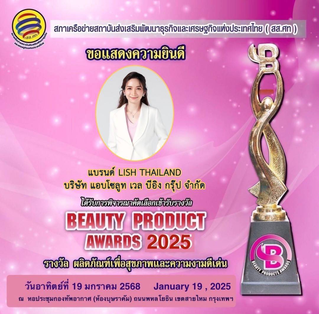 #แอบโซลูทเวลบีอิงกรุ๊ป #HcareThailand #LISHHAIRAnti-AgingSerum #LISHFLORA #TopBrandAwards2025 #รางวัลผลิตภัณฑ์เพื่อสุขภาพและความงามดีเด่น #BeautyProductAwards2025 #ชมรมธุรกิจนักข่าวธุรกิจ #ชมรมสมาพันธ์สื่อสารมวลชนแห่งประเทศไทย #สภาเครือข่ายสถาบันส่งเสริมพัฒนาธุรกิจและเศรษฐกิจแห่งประเทศไทย #สส.ศท.