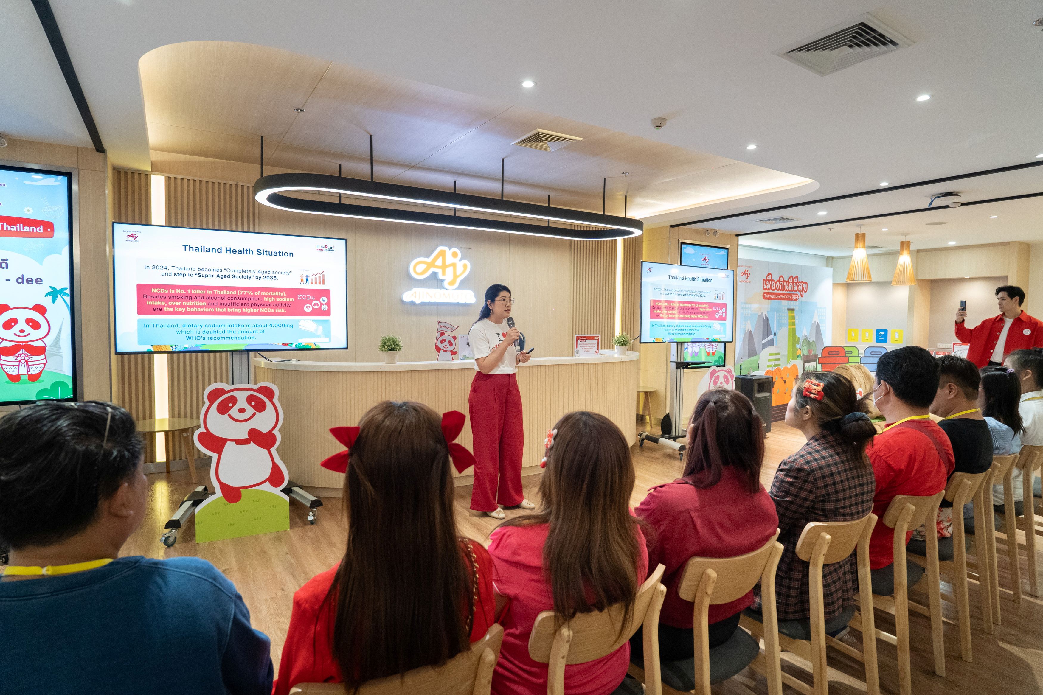 การเสริมสร้างความรู้ความเข้าใจในแนวคิด อาหารที่ดีเพื่อสุขภาพและสิ่งแวดล้อม เพื่อความอร่อยที่ยั่งยืน เป็นสิ่งที่ บริษัท อายิโนะโมะโต๊ะ (ประเทศไทย) จำกัด บริษัทชั้นนำของโลกในการสร้างความกินดีมีสุข ให้ความสำคัญเสมอมา ตลอดทั้งปี 2567 อายิโนะโมะโต๊ะจึงได้จัดกิจกรรม Ajinomoto Cooking Hub: Flavour Journey คลาสสอนทำอาหารเมนูสุดฮิตที่แชร์เทคนิคการปรุงอาหารเพื่อสุขภาพและสิ่งแวดล้อมอย่างยั่งยืน ต่อเนื่องกว่า 22 คลาส ที่ได้สร้างแรงบันดาลใจให้เหล่านิสิต-นักศึกษา นักกีฬา ผู้ประกอบการ รวมไปถึงสื่อมวลชนและอินฟลูเอนเซอร์ว่าการปรุงอาหารในครัวเรือนสามารถมีบทบาทสำคัญในการดูแลทั้งสุขภาพของตนเองและสิ่งแวดล้อมในระยะยาว โดยนำเสนอผ่าน 2 แนวทางหลักที่สำคัญ คือ Delicious Salt Reduction – การลดปริมาณโซเดียมในอาหาร แต่ยังคงรักษารสชาติความอร่อยตามเอกลักษณ์ของอาหารไทย และ Too Good To Waste – เทคนิคการใช้วัตถุดิบอย่างคุ้มค่า สร้างสรรค์เมนูจากของเหลือในครัวเรือน เพื่อลดขยะอาหารและช่วยรักษาสิ่งแวดล้อม