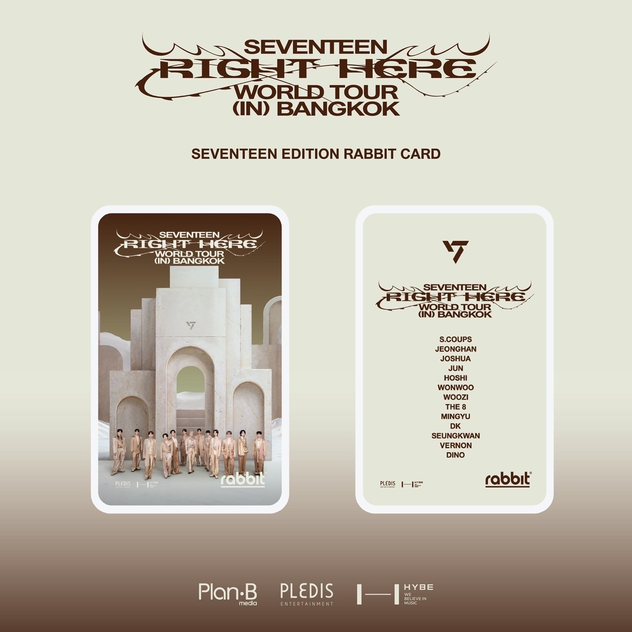 “SEVENTEEN (เซเว่นทีน)” ศิลปิน K-Pop Icon ที่โด่งดังระดับโลก ไม่ว่าจะขึ้นเวทีไหนก็จัดเต็มเพอร์ฟอร์แมนซ์แบบสุดยอดในทุกเวที โดยปีนี้จัดเวิร์ลทัวร์ครั้งใหม่บินลัดฟ้ามาพบแฟนๆ ชาวเอเชีย รวมถึงมาขึ้นเวทีให้แฟนๆ CARATs ชาวไทยได้กรี๊ดกันแล้ว!! ในคอนเสิร์ต SEVENTEEN [RIGHT HERE] WORLD TOUR IN BANGKOK 15 กุมภาพันธ์ 2568 ที่ราชมังคลากีฬาสถาน งานนี้ PlanB Media และ HYBE ไม่รอช้าผนึกกำลังจัดเซอร์ไพรส์ชุดใหญ่มอบให้ชาว CARATs อีกครั้ง! กับโปรเจกต์พิเศษครั้งแรกของโลก! บนบัตรแรบบิท SEVENTEEN ลิมิเต็ดอิดิชั่น! ครั้งแรกในประวัติศาสตร์ที่วง SEVENTEEN ศิลปิน K-Pop กลุ่มแรกที่ได้อยู่บนบัตรแรบบิทอย่างเป็นทางการ! บอกเลยว่านี่ไม่ใช่แค่บัตรเดินทาง แต่คือไอเท็มสะสมที่แฟนๆ ต้องมี!!