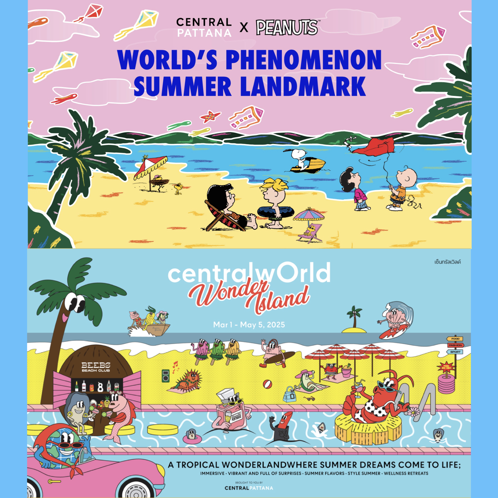 กรุงเทพฯ - บริษัท เซ็นทรัลพัฒนา จำกัด (มหาชน) เบอร์หนึ่งอสังหาริมทรัพย์ไทย และผู้บริหารศูนย์การค้าเซ็นทรัลทั่วประเทศ ทุ่ม 600 ล้านบาท เปิดตัวแคมเปญ ‘Summer Invitation 2025’ พลิกโฉมประสบการณ์ซัมเมอร์ที่ดีที่สุด ตั้งแต่วันที่ 1 มี.ค. 68 – 5 พ.ค.2568 เนรมิตศูนย์การค้าเซ็นทรัลทั่วประเทศให้เป็น ‘Global Summer Destination’ สนับสนุนไทยขึ้นแท่น ‘Destination of the Year 2025’ หนึ่งในจุดหมายปลายทางแห่งการพักผ่อนระดับโลก ที่จัดอันดับโดย Travel + Leisure นิตยสารท่องเที่ยวทรงอิทธิพล จับมือ Peanuts Worldwide ดึง Snoopy & The Peanuts™ gang ร่วมฉลองครบรอบ 45 ปี เซ็นทรัลพัฒนา ยกขบวนความสุขที่ศูนย์การค้าเซ็นทรัล ทั่วประเทศ สร้างความสุขทุกเจเนอเรชัน พร้อมเปิดตัวแคมเปญไฮไลท์ centralwOrld x BEEBS PENTHOUS จับมือศิลปินไทยชื่อดังร่วมสร้าง Summer Wonder Island Adventures ที่เซ็นทรัลเวิลด์... ชมคลิป ซัมเมอร์สุดมันส์ Sun Fun Fest ที่ศูนย์การค้าเซ็นทรัลทั่วไทย คลิก https://youtu.be/SJY5rTgjX6k