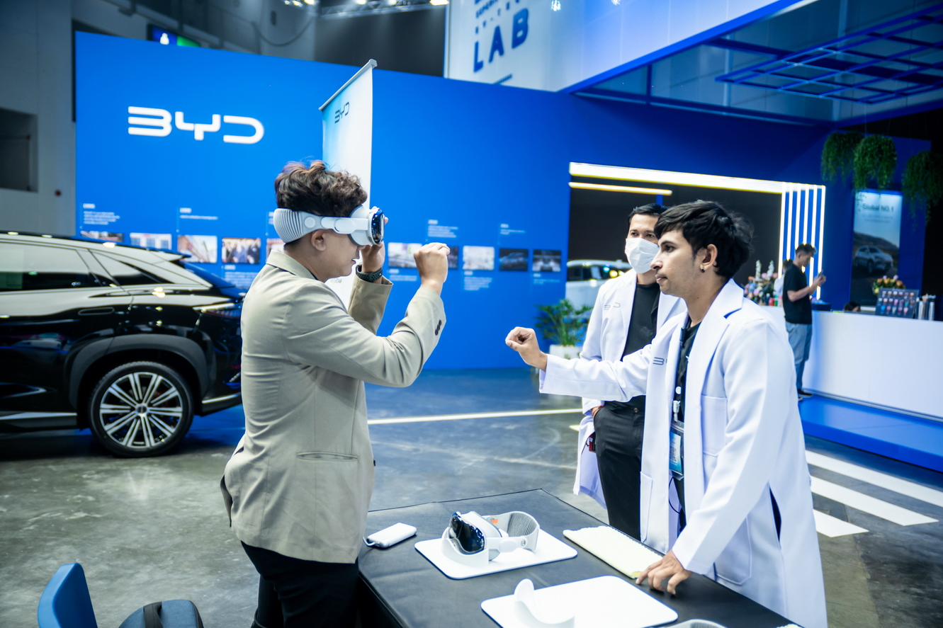 ส่วนที่สามของ BYD Lab คือ Vision-Lab ให้ผู้เข้าร่วมงานได้สัมผัสกับ Yangwang U8 คันจริงร่วมกับการใช้กล้อง interactive AR เพื่อศึกษาเทคโนโลยีในรถยนต์ผ่านภาพเสมือนจริง ในส่วนถัดไปเป็น Simulation-Lab ให้ผู้เข้าร่วมงานชมศักยภาพของ Yangwang U8 ที่สามารถขับเคลื่อนได้ในสระน้ำความลึก 1.5 เมตร ในส่วนสุดท้าย ผู้เข้าร่วมงานจะได้ทดลองขับรถยนต์ BYD รุ่นที่ชื่นชอบผ่านสถานีจำลองรูปแบบต่างๆ ในส่วน Test-Lab