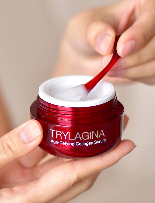 ผลิตภัณฑ์ Trylagina Age-Defying Collagen Serum 12X เซรั่มสูตรใหม่ที่ยกระดับ การดูแลผิวหน้าเพื่อลดริ้วรอยไปอีกขั้น ผสาน Trylagina 12X คอลลาเจนเข้มข้นขึ้น 12 เท่า! ใช้ง่ายกระปุกเดียวจบทุกปัญหาแห่งวัย 40+ เด่นด้วยนวัตกรรม 5D Matrixcolla เอกลักษณ์เฉพาะของ Trylagina ช่วยกระตุ้นคอลลาเจนทั้ง 5 ชนิด สามารถช่วยให้ ริ้วรอยแนวตั้งและแนวนอน ดูลดเลือนลงได้ภายในระยะเวลา 14 วัน* รับรองผลทดสอบจาก Spincontrol และสารสกัดที่คัดสรรมาเพื่อผลลัพธ์ที่ผิวดูอ่อนเยาว์อย่างเป็นธรรมชาติ
