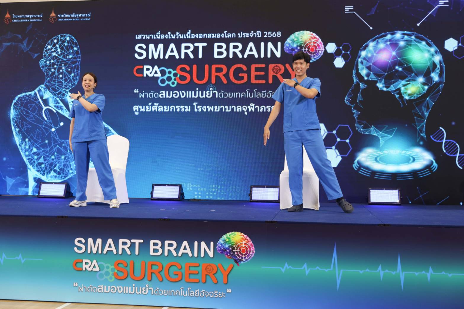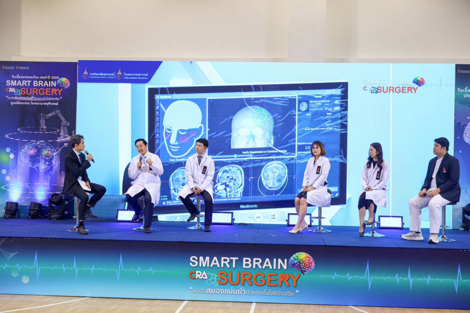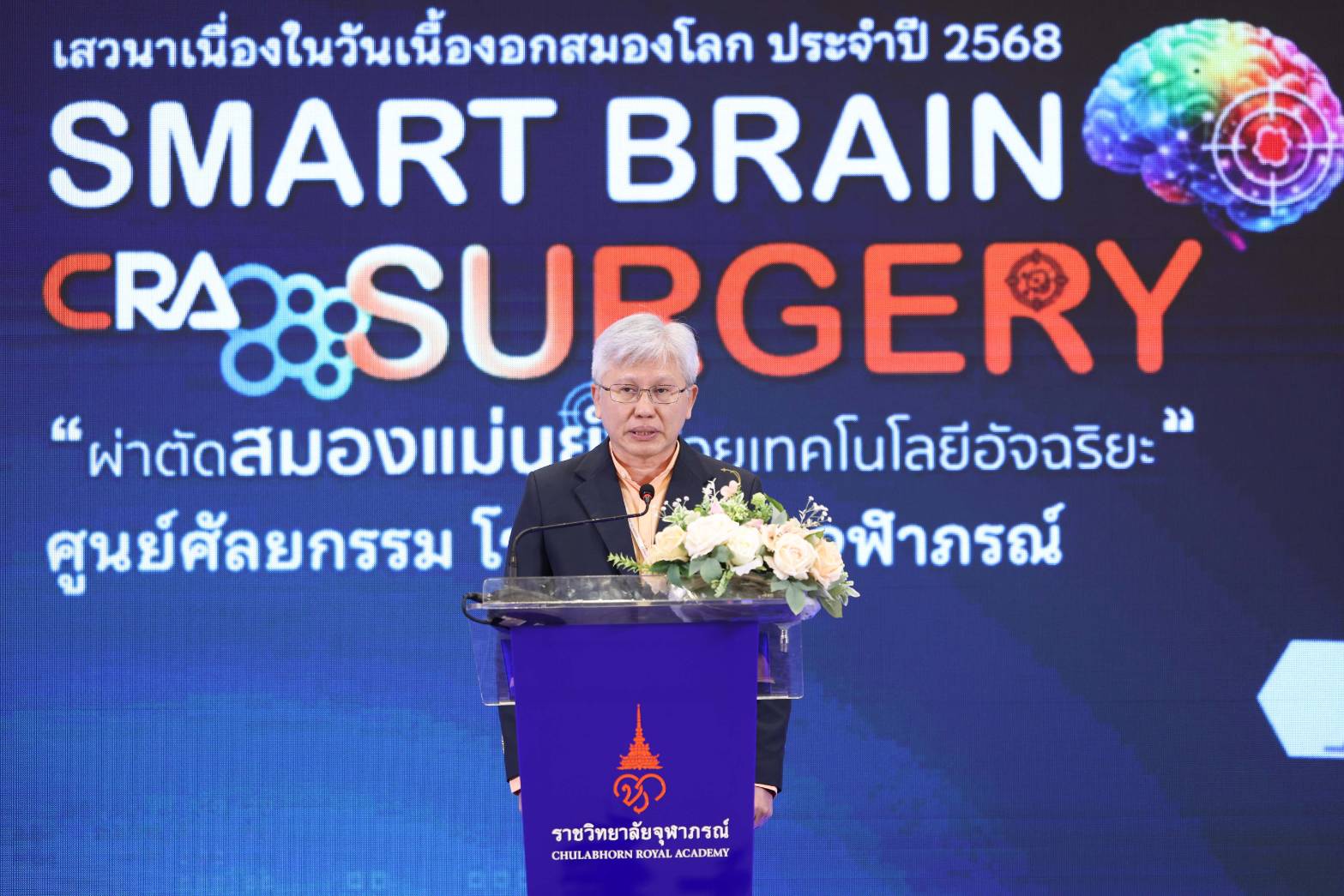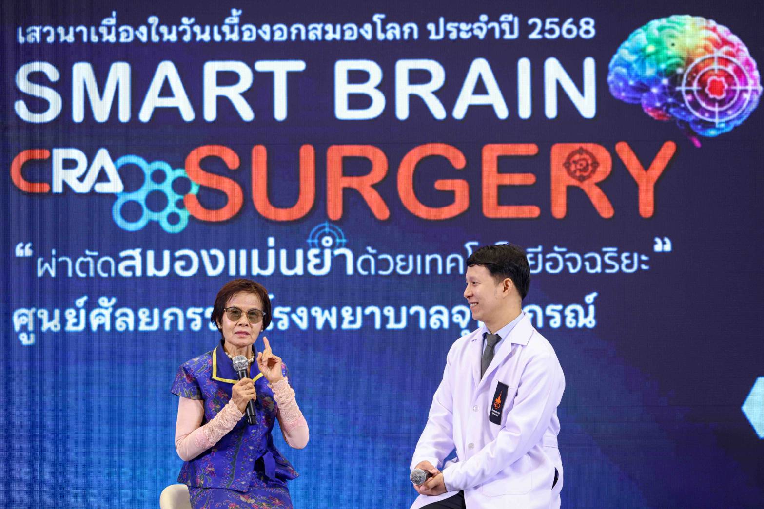หัวข้อ "เบื้องหลังความสำเร็จ:วิสัญญีกับการผ่าตัดเนื้องอกสมอง" โดย พญ.นิศารัตน์ อาชวาคม วิสัญญีแพทย์เฉพาะทางสำหรับผู้ป่วยโรคทางระบบประสาท โรงพยาบาลจุฬาภรณ์ เปิดเผยถึง บทบาทวิสัญญีแพทย์เฉพาะทางด้านระบบประสาท โดยจะมีหน้าที่หลักในการดูแลผู้ป่วยที่เข้ารับการผ่าตัดทางระบบประสาท เช่น สมอง ไขสันหลัง และเส้นประสาท ซึ่งถือว่าเป็นการผ่าตัดที่มีความซับซ้อนสูง โดยเริ่มตั้งแต่การวางแผนและการเลือกใช้เทคนิคในการดมยาสลบให้เหมาะสมกับสภาวะของผู้ป่วย ลักษณะการผ่าตัด การเฝ้าระวังสัญญาณชีพและการทำงานของสมองขณะผ่าตัด รวมถึงการดูแลผู้ป่วยหลังผ่าตัด โดยเฉพาะในเรื่องการระงับปวด ซึ่งการวางยาสลบสำหรับผ่าตัดสมองแตกต่างกับการผ่าตัดทั่วไปเพราะการระงับความรู้สึกสำหรับการผ่าตัดทางระบบประสาท จำเป็นต้องอาศัยความรู้ทั้งด้านกายวิภาคและการทำงานของระบบประสาทเป็นอย่างดี เนื่องจากสมองเป็นอวัยวะที่เปราะบาง ต้องให้ความสำคัญกับการควบคุมความดันในกะโหลกศีรษะ ทั้งนี้เพื่อให้คุณหมอผ่าตัดสามารถผ่าตัดได้โดยง่าย, การเฝ้าระวังพิเศษ เช่น การดูคลื่นสมองระหว่างผ่าตัด การใช้เทคโนโลยีมอนิเตอร์การทำงานของสมอง ต้องเลือกยาที่ไม่รบกวนเทคนิคนั้น ๆ, อีกทั้งการผ่าตัดแบบพิเศษ เช่น awake craniotomy คือการที่คนไข้ยังตื่นรู้ตัวขณะผ่าตัด การฝังเครื่องกระตุ้นในสมอง เป็นต้น สำหรับการเตรียมตัวก่อนการผ่าตัดก็จะคล้าย ๆ กับการผ่าตัดทั่วไป เช่น การงดน้ำงดอาหารก่อนการผ่าตัด 8 ชั่วโมง, การหยุดสูบบุหรี่หรือแอลกอฮอล์, การหยุดยาบางชนิด เช่น ยาละลายลิ่มเลือด เป็นต้น และโดยส่วนใหญ่แล้วหลังผ่าตัดมีความจำเป็นที่ต้องสังเกตอาการที่ห้อง ICU อย่างน้อย 1 คืน เพื่อดูแลและประเมินอาการทางระบบประสาทอย่างใกล้ชิด แต่หากมีการผ่าตัดแบบพิเศษ เช่น awake craniotomy (การผ่าตัดสมองขณะตื่นอยู่) ก็อาจจะมีการเตรียมพร้อมที่มีรายละเอียดมากขึ้น หลัก ๆ จะมี 3ขั้นตอนง่าย ๆ คือ หลับ-ตื่น-หลับ วิสัญญีแพทย์จะมีการอธิบายถึงขั้นตอนอย่างละเอียดก่อน มีการให้ยาทางน้ำเกลือให้คนไข้หลับ และมีการบล็อกเส้นประสาทที่ไปเลี้ยงบริเวณศีรษะ ช่วงที่ศัลยแพทย์จะทำการตัดเอาเนื้องอกสมองออก ก็จะปิดยา คนไข้จะตื่นภายใน 15 นาที โดยไม่รู้สึกเจ็บ แต่อาจมีความรู้สึกเมื่อย หนาว และขัด ๆ สายสวนปัสสาวะได้ ระหว่างนี้จะมีการทำการผ่าตัดไปด้วย โดยที่ให้คนไข้พูดคุย อ่านรูป ยกแขน ยกขา ไปด้วย และหลังจากที่ผ่าตัดเอาก้อนออกเสร็จแล้ว หมอก็จะเปิดยาให้คนไข้หลับอีกครั้ง โดยที่คนไข้ไม่ต้องกังวลเลยเนื่องจากหมอจะอยู่