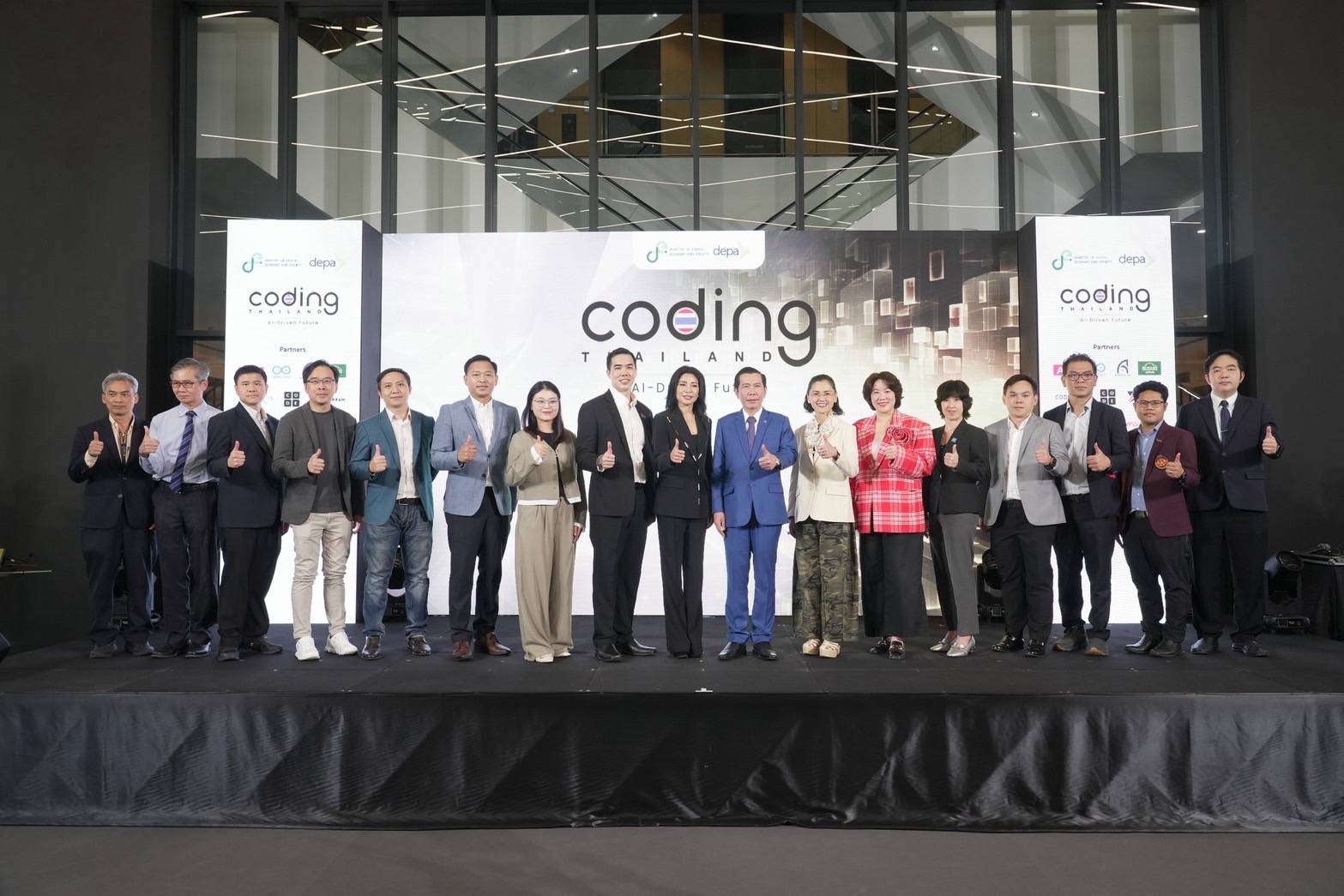 ผศ.ดร.ณัฐพล นิมมานพัชรินทร์ ผู้อำนวยการใหญ่ สำนักงานส่งเสริมเศรษฐกิจดิจิทัล หรือ ดีป้า เป็นประธานเปิดโครงการ Coding Thailand 2025: AI-Driven Future โดยมีเครือข่ายพันธมิตรทั้งภาครัฐ ภาคเอกชน สถาบันการศึกษา คณะครู นักเรียน บุคลากรทางการศึกษาร่วมในพิธีโดยพร้อมเพรียง
