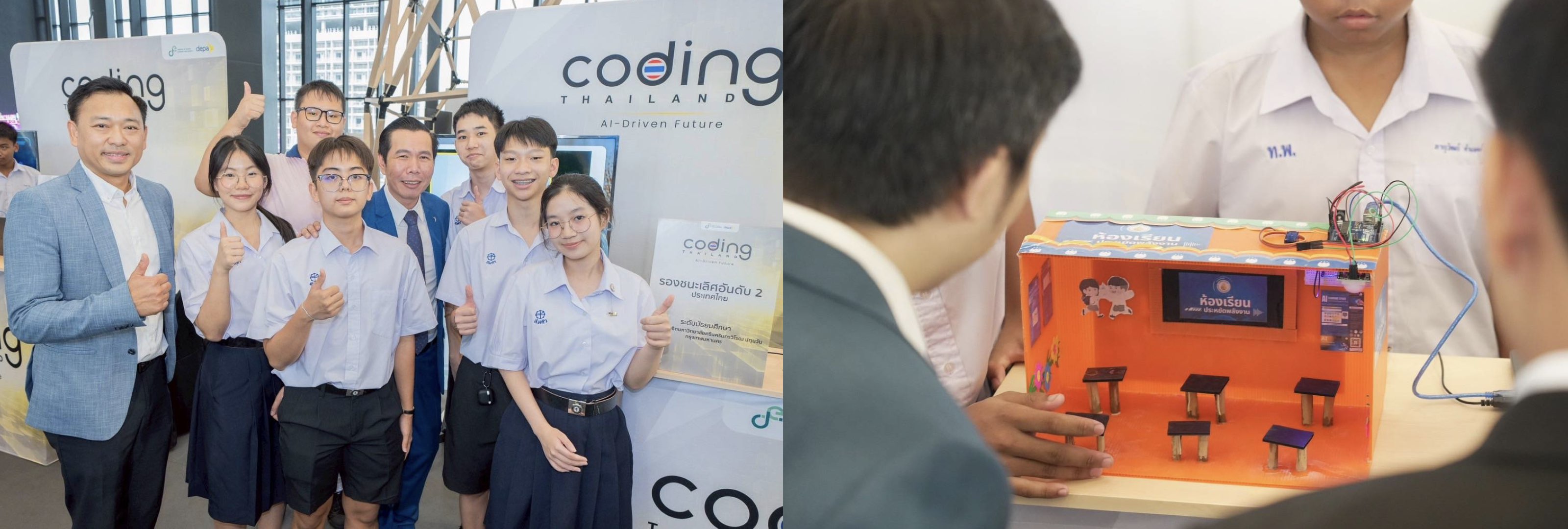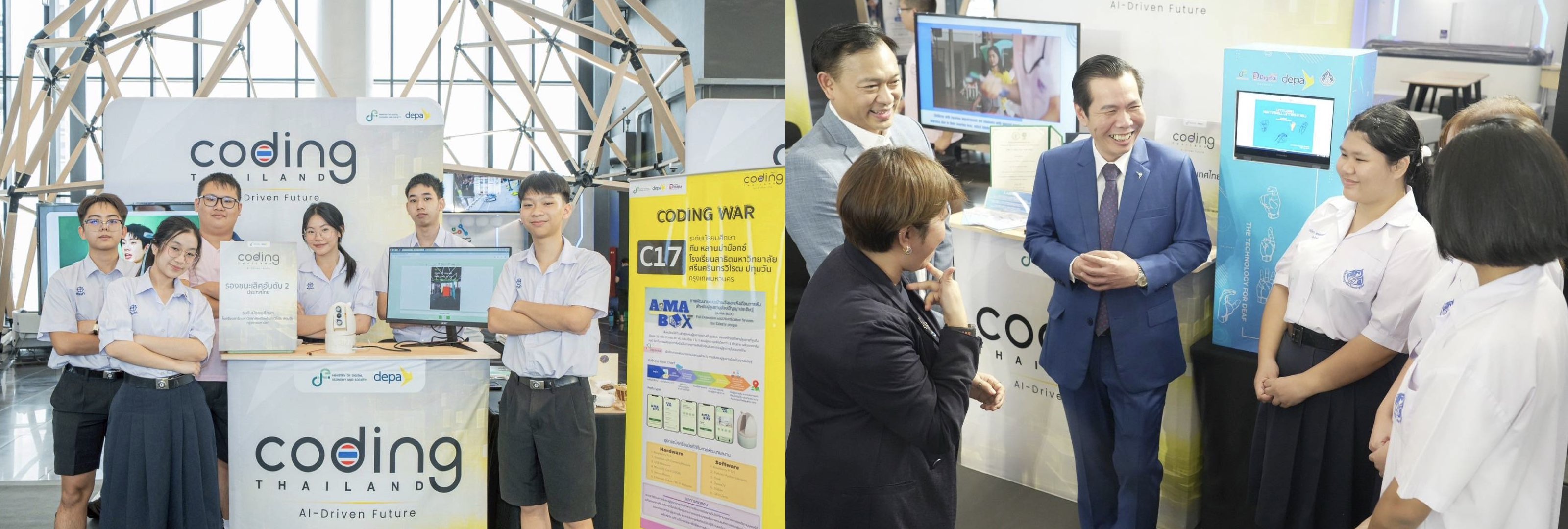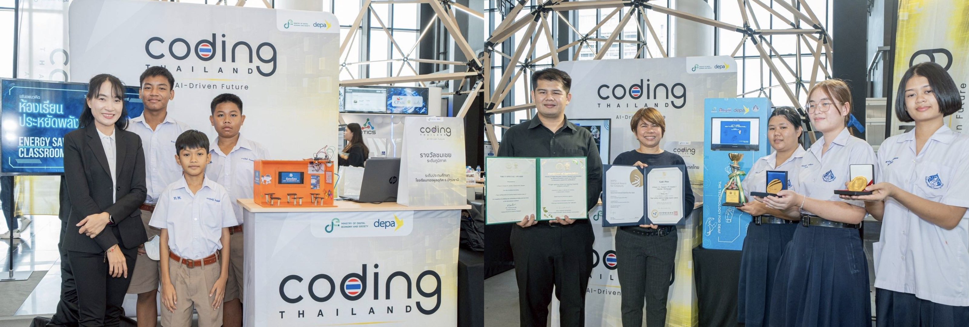 การพัฒนาทักษะด้าน Coding และขยายผลสู่เทคโนโลยีอื่น ไม่ว่าจะเป็น AI, IoT, Robotics และ STEM ผ่านโครงการ Coding Thailand 2025: AI-Driven Future โดยมีวัตถุประสงค์เพื่อส่งเสริมการพัฒนาทักษะด้าน Coding และ AI แก่นักเรียนระดับประถมศึกษา มัธยมศึกษา และอาชีวศึกษา รวมถึงครูและบุคลากรทางการศึกษา อีกทั้งส่งเสริมและสนับสนุนให้เกิดเวทีแข่งขันและนำเสนอผลงานนวัตกรรมดิจิทัลเพื่อแสดงศักยภาพของเยาวชน และสร้างการตระหนักรู้เกี่ยวกับเทคโนโลยีดิจิทัลแก่เยาวชนและประชาชนทั่วไป