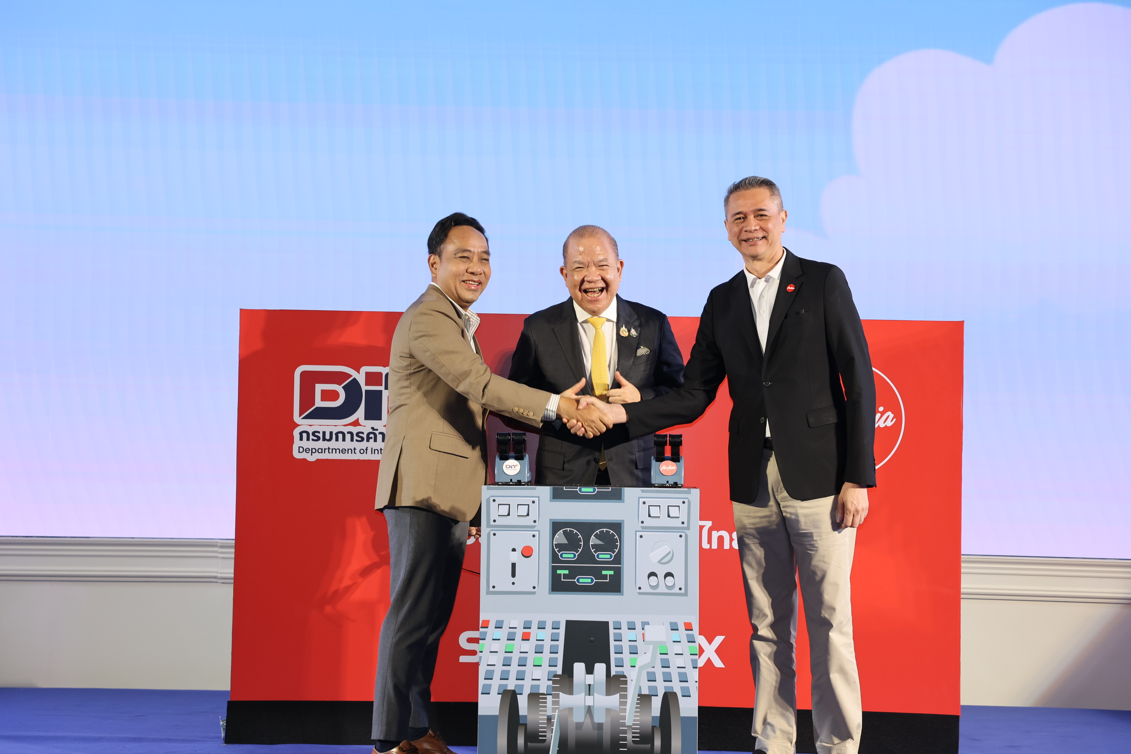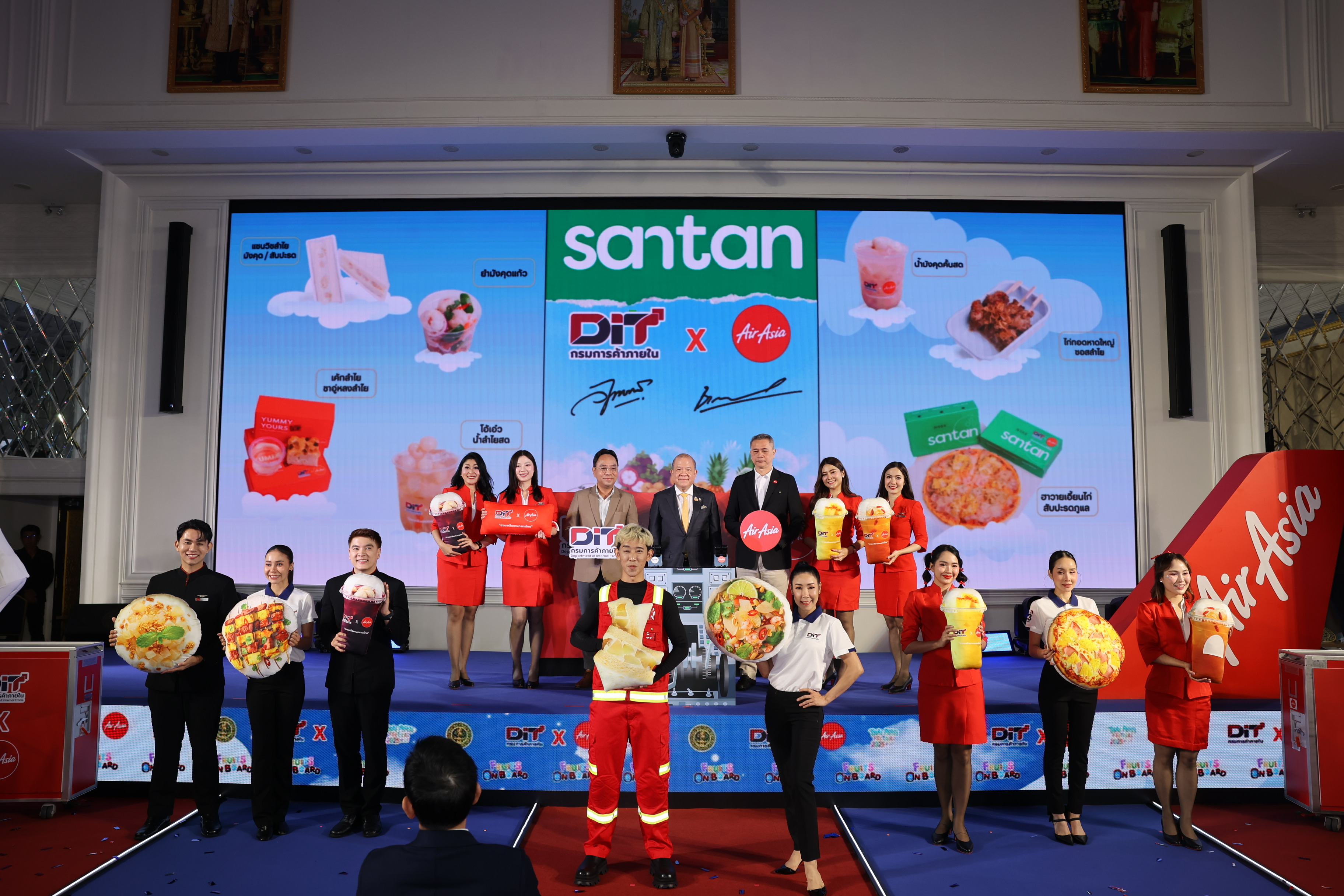 นายวิทยากร มณีเนตร อธิบดีกรมการค้าภายใน กล่าวว่า กรมได้รับมอบหมาย จากนายพิชัยให้ลงนาม MOU ร่วมกับบริษัท ไทยแอร์เอเชีย จำกัด ในการช่วยดูดซับผลผลิตผลไม้ตามมาตรการบริหารจัดการผลไม้ปี 2568 เป้าหมาย 1,000 ตัน โดยต้องขอขอบคุณไทยแอร์เอเชียในความร่วมมือในครั้งนี้ ซึ่งจะช่วยรับซื้อผลไม้หลัก 3 ชนิด ได้แก่ ลำไย มังคุด และสับปะรดภูแล ผลิตเป็นเมนูจำหน่ายบนสายการบินไทยแอร์เอเชียตลอดทั้งปี และยังช่วยสนับสนุนนำไปผลิตเป็นสินค้าผลไม้แปรรูป ในรูปแบบการเข็นขายบนเครื่อง และมีแผนที่จะช่วยเกษตรกรผู้เลี้ยงกุ้งขาวแวนนาไมกับปลากะพงด้วยการทำเมนูอุ่นร้อนพร้อมทานจำหน่ายบนสายการบินทั้งในประเทศและต่างประเทศด้วย ซึ่งที่ทราบมา คือเมนูน่าทานมาก ๆ ไม่ว่าจะเป็นเอบิซารุโซบะ แกงเหลืองทะเลไข่เจียวโหระพา