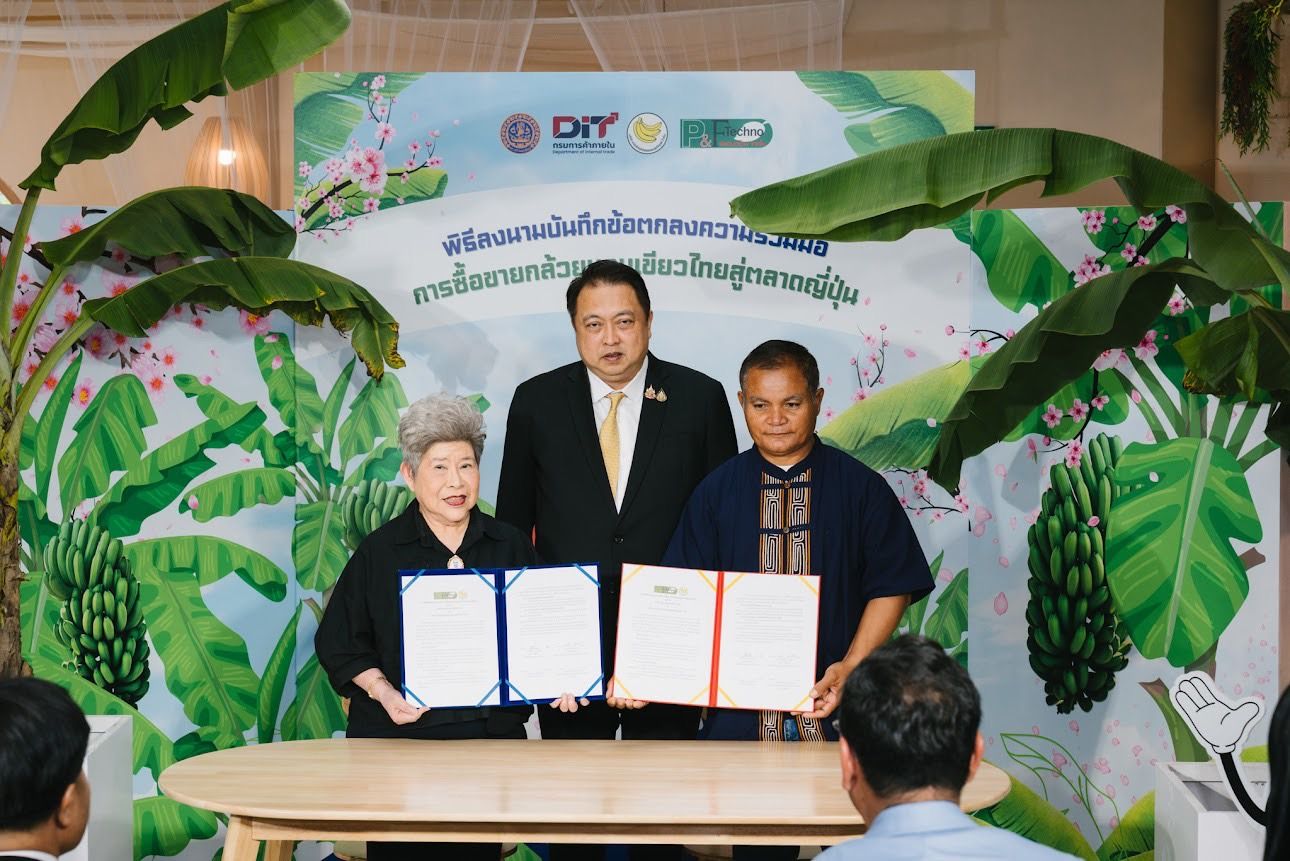 กระทรวงพาณิชย์โดยกรมการค้าภายในจึงได้มีการจัดทำลงนามบันทึกข้อตกลงความร่วมมือ (MOU) ระหว่าง บริษัท พีแอนด์เอฟ เทคโน จำกัด จากประเทศญี่ปุ่น กับ บริษัท แปลงใหญ่กล้วยหอมทองสุขไพบูลย์ จำกัด เพื่อส่งออกกล้วยหอมทองจากไทยไปยังตลาดญี่ปุ่น โดยใช้โควตาส่งกล้วยหอมภายใต้กรอบความตกลง JTEPA ปริมาณ 8,000 ตัน/ปี ปัจจุบันมีการส่งออก กล้วยหอมทอง