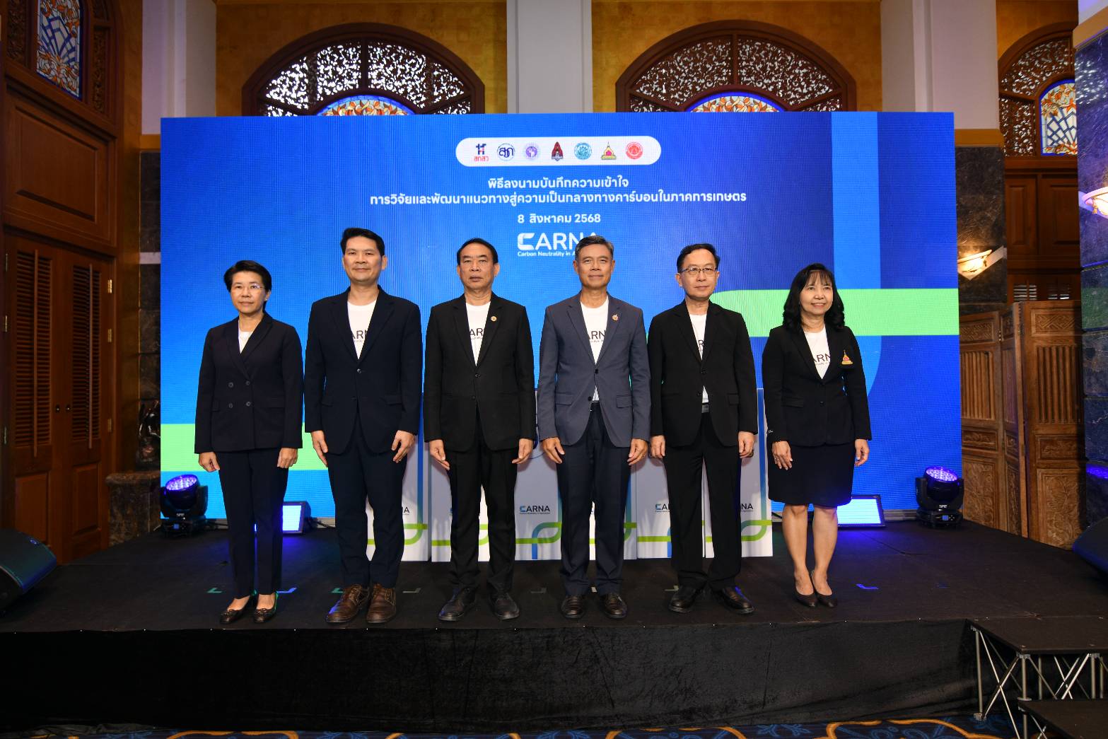 เมื่อวันที่ 8 ส.ค. 2568 สำนักงานพัฒนาการวิจัยการเกษตร (องค์การมหาชน) (สวก.)มหาวิทยาลัยเชียงใหม่ (มช.) และเครือข่าย ร่วมจัดพิธีลงนามบันทึกความเข้าใจ “การวิจัยและพัฒนาแนวทางสู่ความเป็นกลางทางคาร์บอนในภาคการเกษตร ” ระหว่างสำนักงานพัฒนาการวิจัยการเกษตร (องค์การมหาชน) มหาวิทยาลัยเชียงใหม่ (มช.) มหาวิทยาลัยขอนแก่น (มข.) มหาวิทยาลัยศิลปากร (มศก.) มหาวิทยาลัยอุบลราชธานี (ม.อบ.) และมหาวิทยาลัยเทคโนโลยีพระจอมเกล้าธนบุรี (มจธ.) โดยมี ดร.วิชาญ
