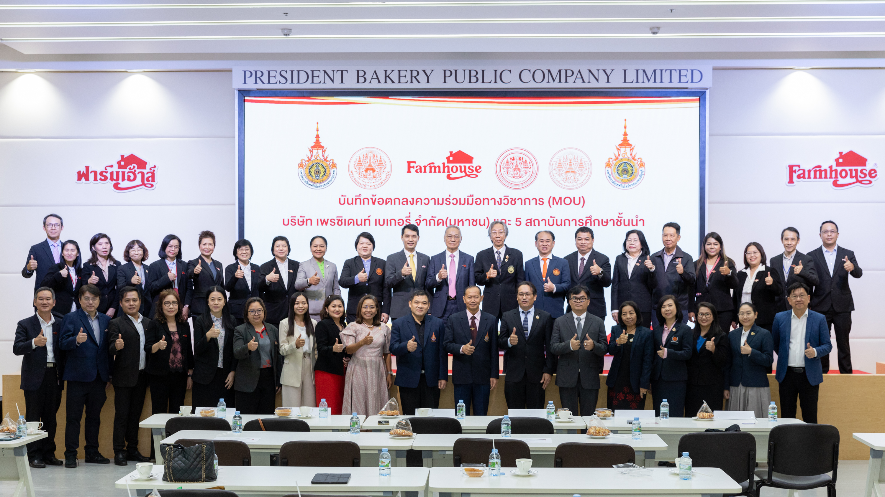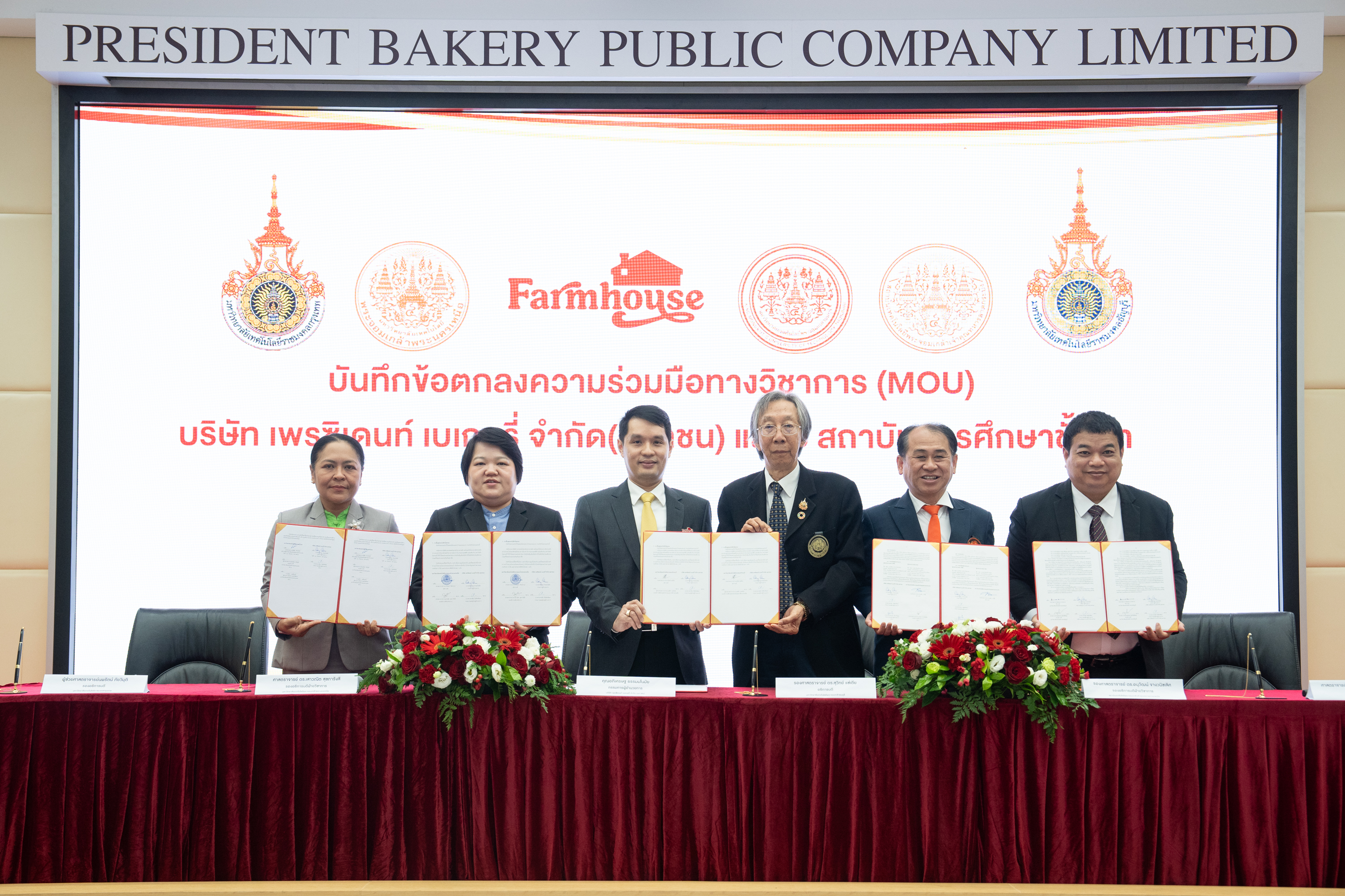 บริษัท เพรซิเดนท์ เบเกอรี จํากัด (มหาชน) ผู้ผลิตและจำหน่ายขนมปังและเบเกอรี่ ภายใต้แบรนด์ “ฟาร์มเฮ้าส์” ลงนามบันทึกข้อตกลงความร่วมมือทางวิชาการ (MOU) ร่วมกับ 5 สถาบันการศึกษาชั้นนำด้านเทคโนโลยี ได้แก่ 1. มหาวิทยาลัยเทคโนโลยีพระจอมเกล้าธนบุรี 2. สถาบันเทคโนโลยีพระจอมเกล้าเจ้าคุณทหารลาดกระบัง 3. มหาวิทยาลัยเทคโนโลยีพระจอมเกล้าพระนครเหนือ 4. มหาวิทยาลัยเทคโนโลยีราชมงคลกรุงเทพ 5. มหาวิทยาลัยเทคโนโลยีราชมงคลธัญบุรี เพื่อขยายความร่วมมือในการพัฒนานักศึกษา การเสริมสร้างศักยภาพบุคลากร การวิจัยและพัฒนา การแลกเปลี่ยนองค์ความรู้ ตลอดจนการสร้างเครือข่ายความร่วมมือระหว่างภาคการศึกษาและภาคอุตสาหกรรม ณ ห้องประชุมเสรีไทย 2 อาคารบางชัน โรงงานบางชัน เมื่อวันที่ 30 กันยายน 2568