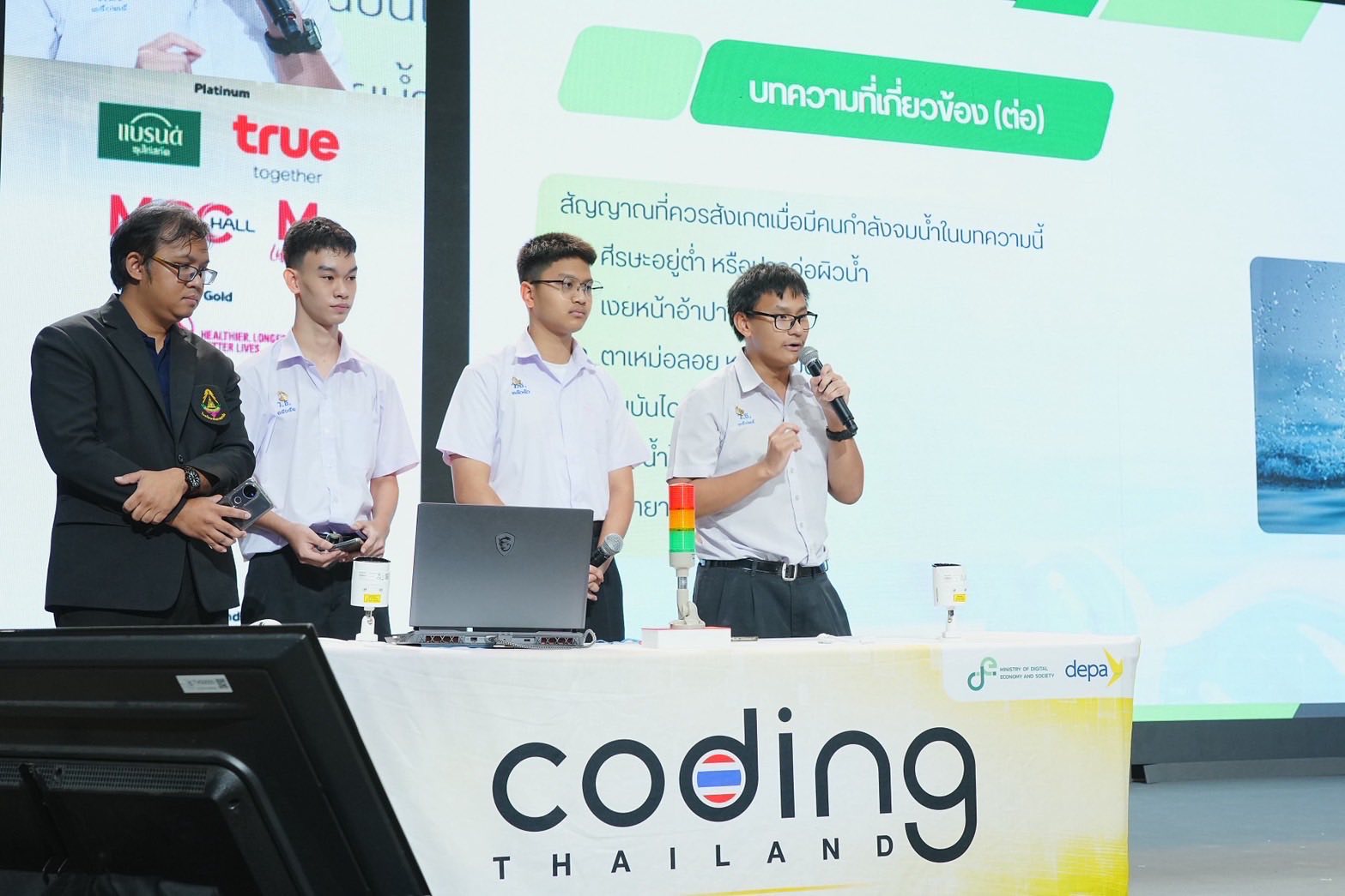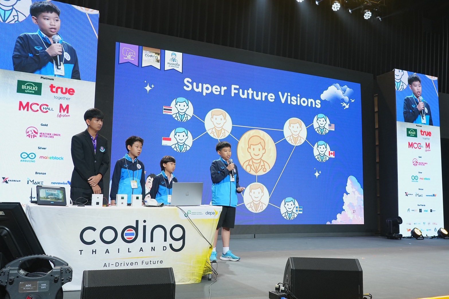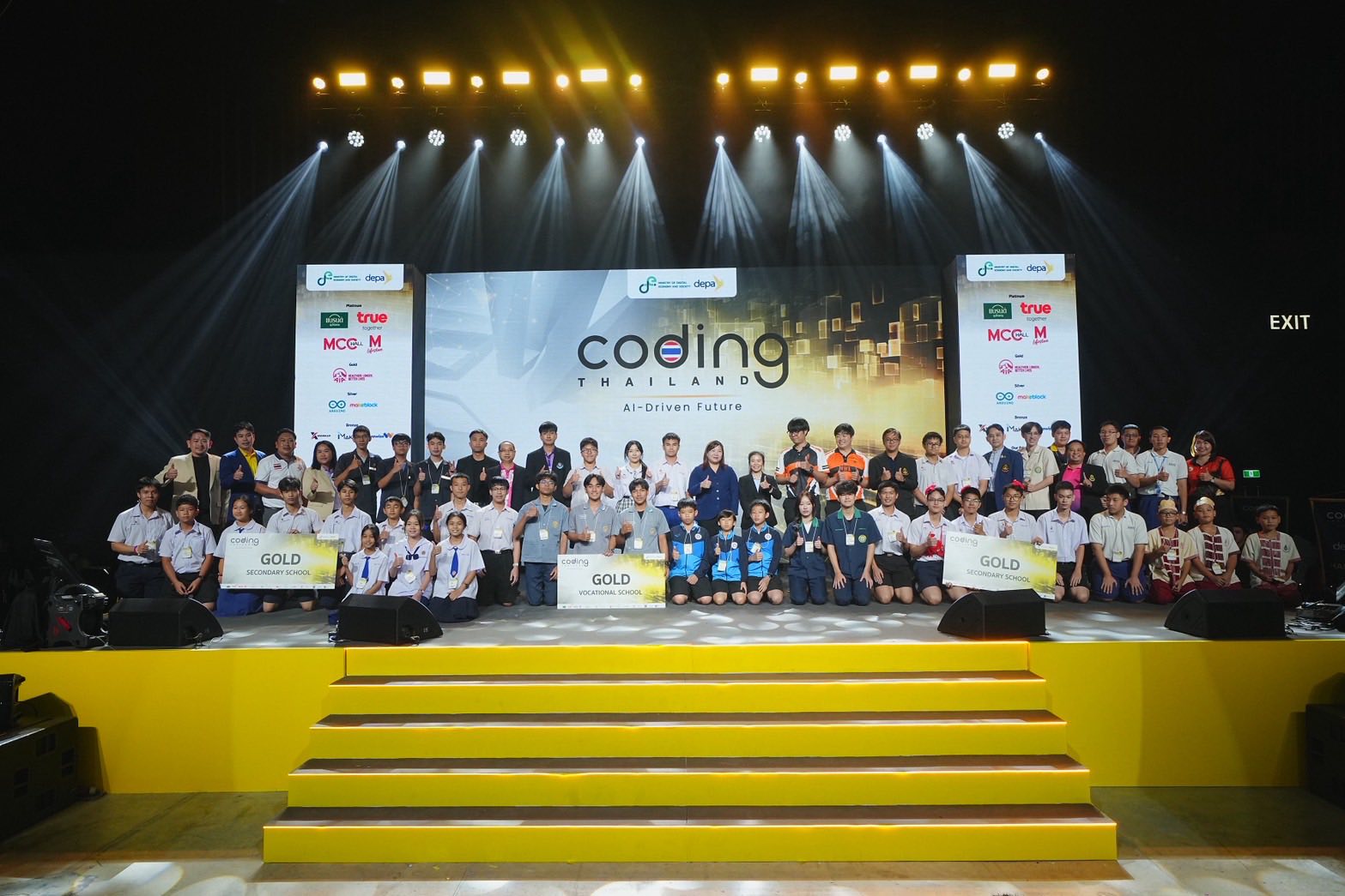 “Coding Thailand 2025: AI-Driven Future ได้รับการตอบรับอย่างดีเยี่ยมจากสถานศึกษาทั่วประเทศ ครูและนักเรียนสมัครเข้าร่วมโครงการมากถึง 3,112 ทีม หรือ 12,448 คน โดยทุกคนได้เรียนรู้ทักษะ Coding และ AI ผ่านแพลตฟอร์มออนไลน์ที่โครงการได้พัฒนาหลักสูตรขึ้น 7 หลักสูตร รวม 24 บทเรียน ก่อนจะมีผู้ที่ผ่านการคัดเลือก จำนวน 804 ทีมเข้าร่วมเวิร์คช็อปกับกิจกรรม Coding & AI Acceleration ใน 8 ภูมิภาคทั่วประเทศ ก่อนให้ครู นักเรียนนำทักษะความรู้มาประยุกต์ใช้ในการพัฒนาแนวคิดนวัตกรรม (Innovation Concept) ในธีม Smart Economy & Smart Society รวมถึงแผนพัฒนาศูนย์การเรียนรู้อย่างยั่งยืนของครูประจำทีม เพื่อคัดเลือก 400 ทีมเข้าสู่เวทีการแข่งขันระดับภูมิภาค Regional Coding & AI Competition ที่เปิดพื้นที่ให้ทุกทีมได้แสดงผลงานนวัตกรรรมต่อคณะกรรมการ และคัดเหลือ 200 ทีมเข้าสู่การแข่งขันรอบชิงชนะเลิศระดับประเทศใน National Coding & AI Competition (ทีมระดับประถมศึกษา 50 ทีม | มัธยมศึกษา 100 ทีม | อาชีวศึกษา 50 ทีม) ซึ่งจะมี 91 สุดยอดผลงานนวัตกรรมที่จะได้รับรางวัลเป็นทุนการศึกษา และทุนส่งเสริมการพัฒนาศูนย์การเรียนรู้ รวมมูลค่ากว่า 18 ล้านบาท และจะมีเพียง 1 ทีมที่ได้รับรางวัล Best of the Best พร้อมรับสิทธิ์เข้าร่วมแข่งขันในเวทีนานาชาติ Taiwan Science Festival and MARC Open Championship 2025” รักษาการรองผู้อำนวยการใหญ่ ดีป้า กล่าว