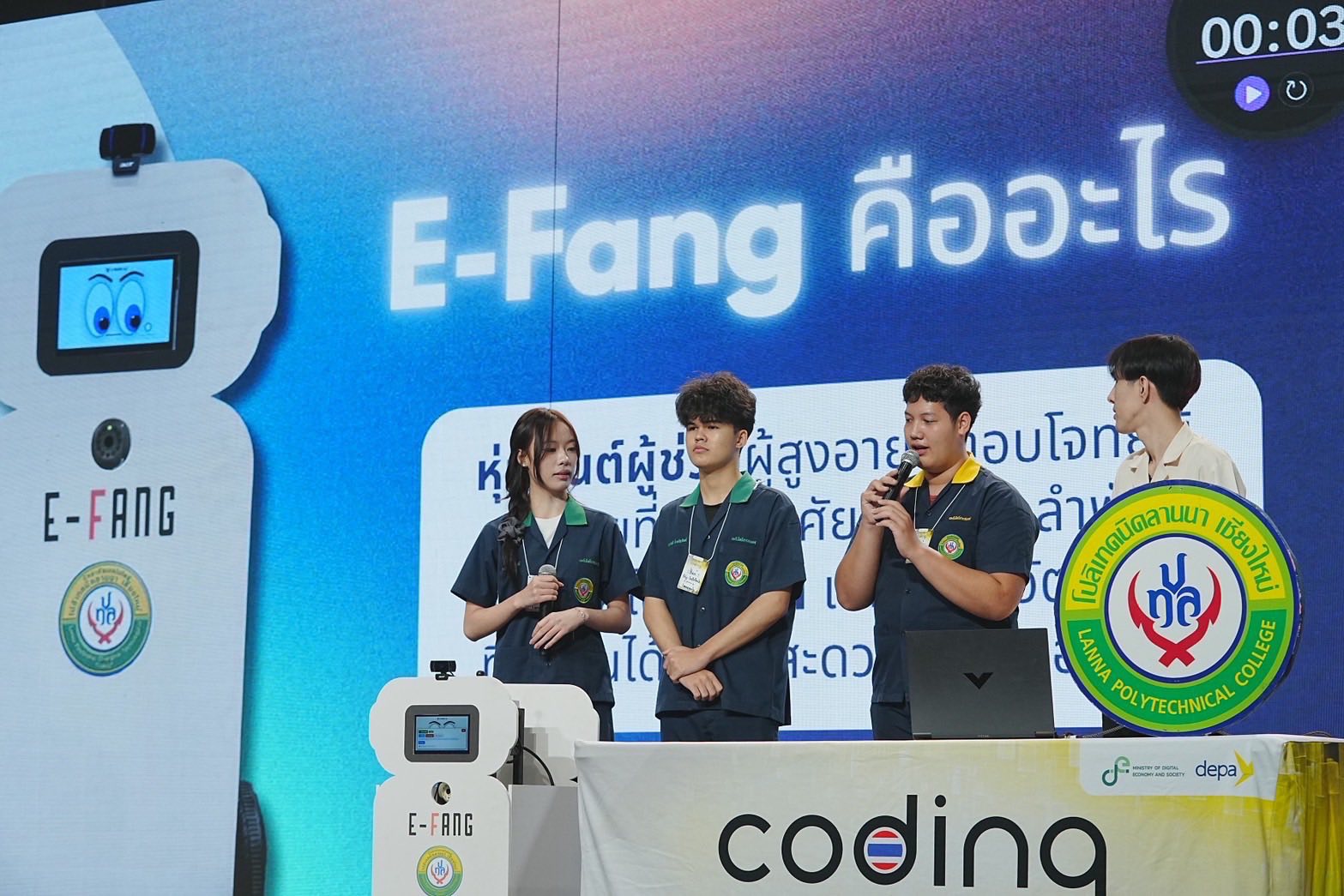 นางสาวกษมา กองสมัคร รักษาการรองผู้อำนวยการใหญ่ สำนักงานส่งเสริมเศรษฐกิจดิจิทัล หรือ ดีป้า เปิดเผยว่า ตลอดระยะเวลาที่ผ่านมา ดีป้า มุ่งส่งเสริมการพัฒนาความรู้และทักษะ Coding แก่นักเรียนและครูผู้สอนมาอย่างต่อเนื่องตั้งแต่ปี 2561 ภายใต้โครงการ Coding Thailand พร้อมส่งเสริมการสร้างสรรค์ระบบนิเวศในทุกมิติ ทั้งการยกระดับโครงสร้างพื้นฐานเพื่อการเรียนรู้ การเสริมศักยภาพครู การสนับสนุนและพัฒนาเยาวชน ตลอดจนการส่งเสริมให้เกิดการประยุกต์ใช้และพัฒนานวัตกรรมดิจิทัล รวมไปถึงการส่งเสริมโอกาสในการแสดงศักยภาพผ่านเวทีการแข่งขัน ทั้งในระดับภูมิภาค ระดับประเทศ และระดับนานาชาติ
