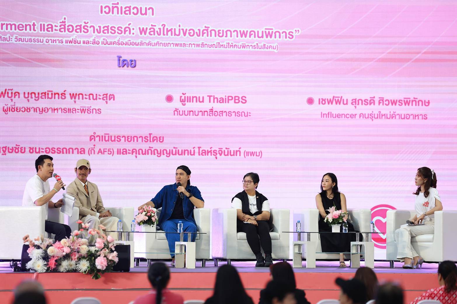 สำหรับกิจกรรมภายในงาน (วันที่ 2) มีการจัดเวทีเสวนา “Empowerment และสื่อสร้างสรรค์ : พลังใหม่ของศักยภาพคนพิการ” โดยมี นายหิรัญกฤษฏิ์ ภัทรบริบูรณ์กุล ผู้เชี่ยวชาญผ้าไทยและแฟชั่น พร้อมด้วย "เชฟบุ๊ค บุญสมิทธิ์ พุกกะณะสุต" ผู้เชี่ยวชาญอาหาร, “เชฟฟิน สุภรดี ศิวพรพิทักษ์” อินฟลูเอนเซอร์คนรุ่นใหม่ด้านอาหาร และผู้แทนสื่อมวลชน นางสาวสุดาวดี เพชรสม ผู้ดูแลโครงการขับเคลื่อนคุณค่าประชาชนกลุ่มเปราะบาง เด็ก สตรี ผู้สูงวัย คนพิการ ฝ่ายสารคดีและสารประโยชน์ สำนักสร้างสรรค์เนื้อหา จาก Thai PBS ได้ร่วมแลกเปลี่ยนมุมมองเกี่ยวกับศักยภาพของคนพิการในมิติอาชีพที่หลากหลาย ทั้งด้านศิลปะ แฟชั่น อาหาร และสื่อสร้างสรรค์ เพื่อสะท้อนให้เห็นว่าคนพิการสามารถต่อยอดความสามารถเฉพาะตัวให้กลายเป็นอาชีพที่มั่นคงได้เช่นเดียวกับทุกคนในสังคม